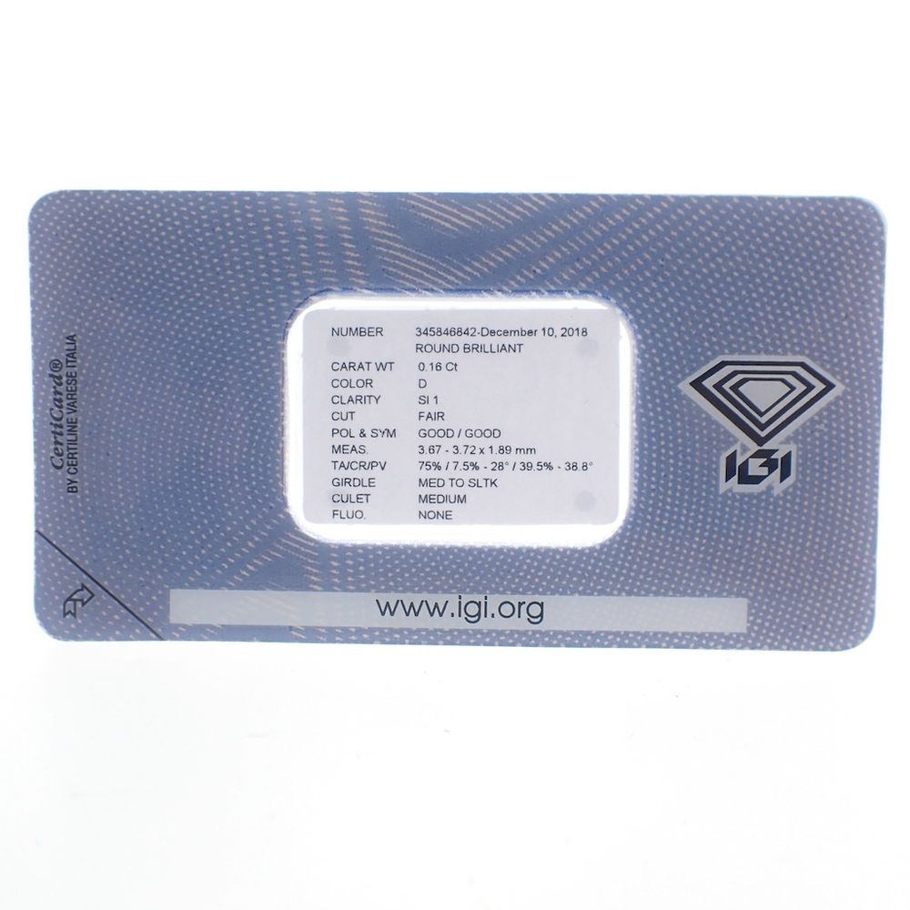 0.16 ct. Brilliant cut diamond D/ SI1 + IGI Certificate - Natural diamond