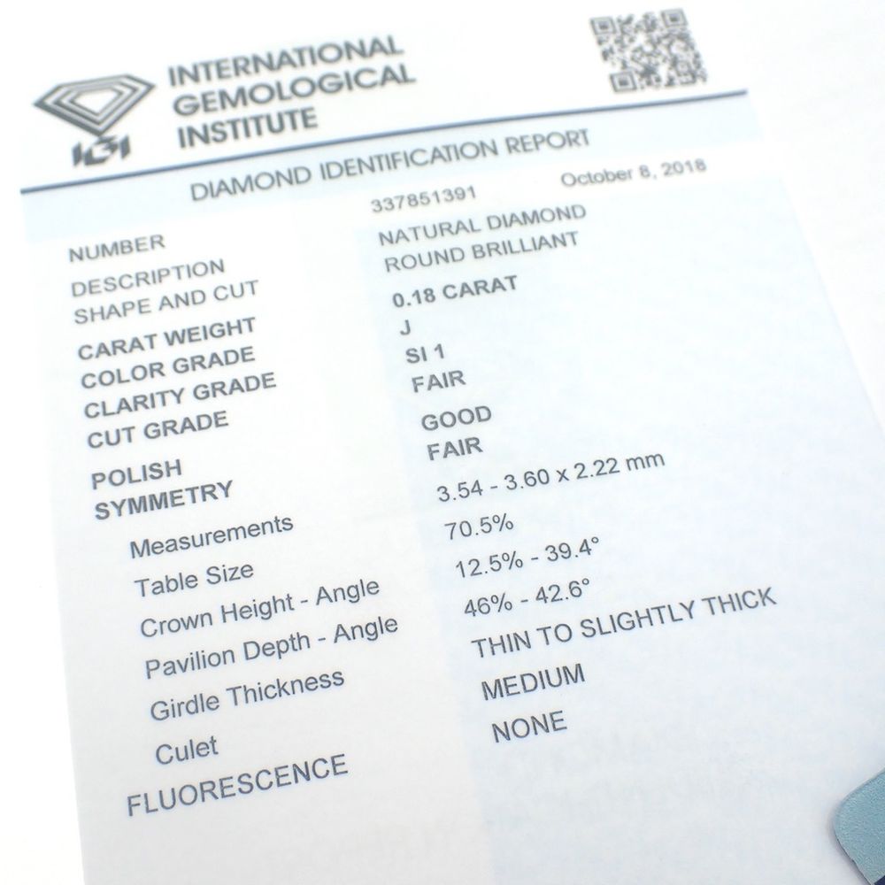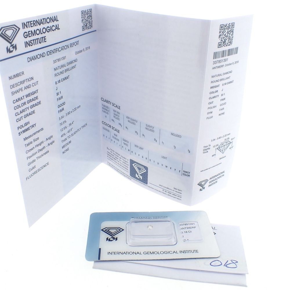 0.18 ct. Brilliant cut diamond J/ SI1 + IGI Certificate - Natural diamond