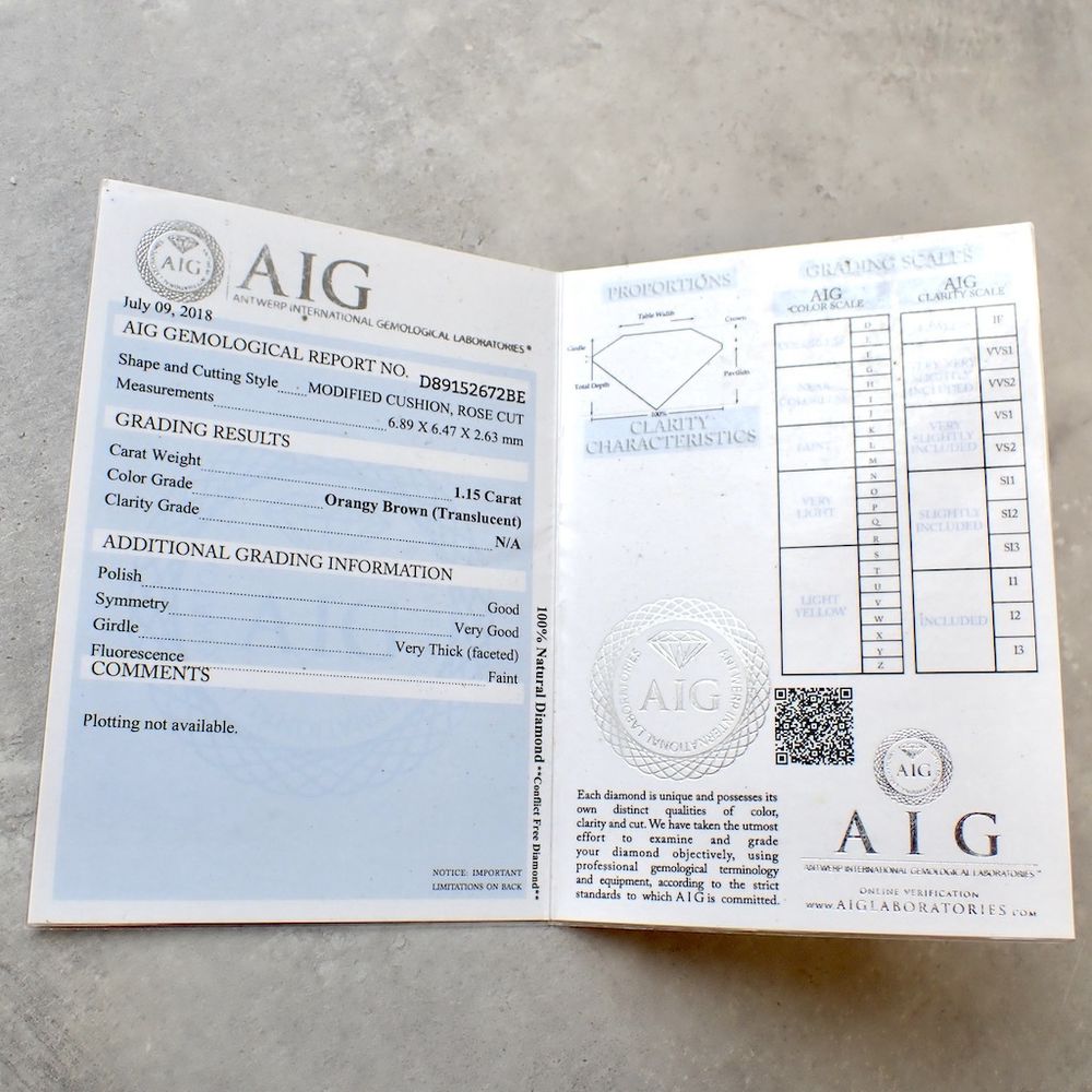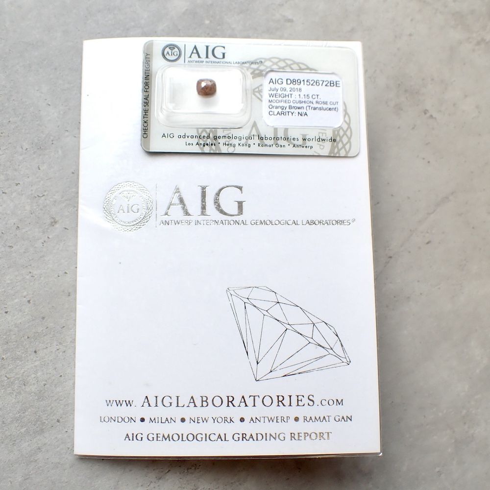 1.15 ct. Rose cut diamond Orange brown N/A + AIG Certificate