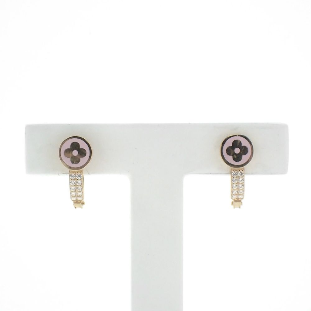 16.8 ct. Gold stud earrings with enamel flower and zirconia