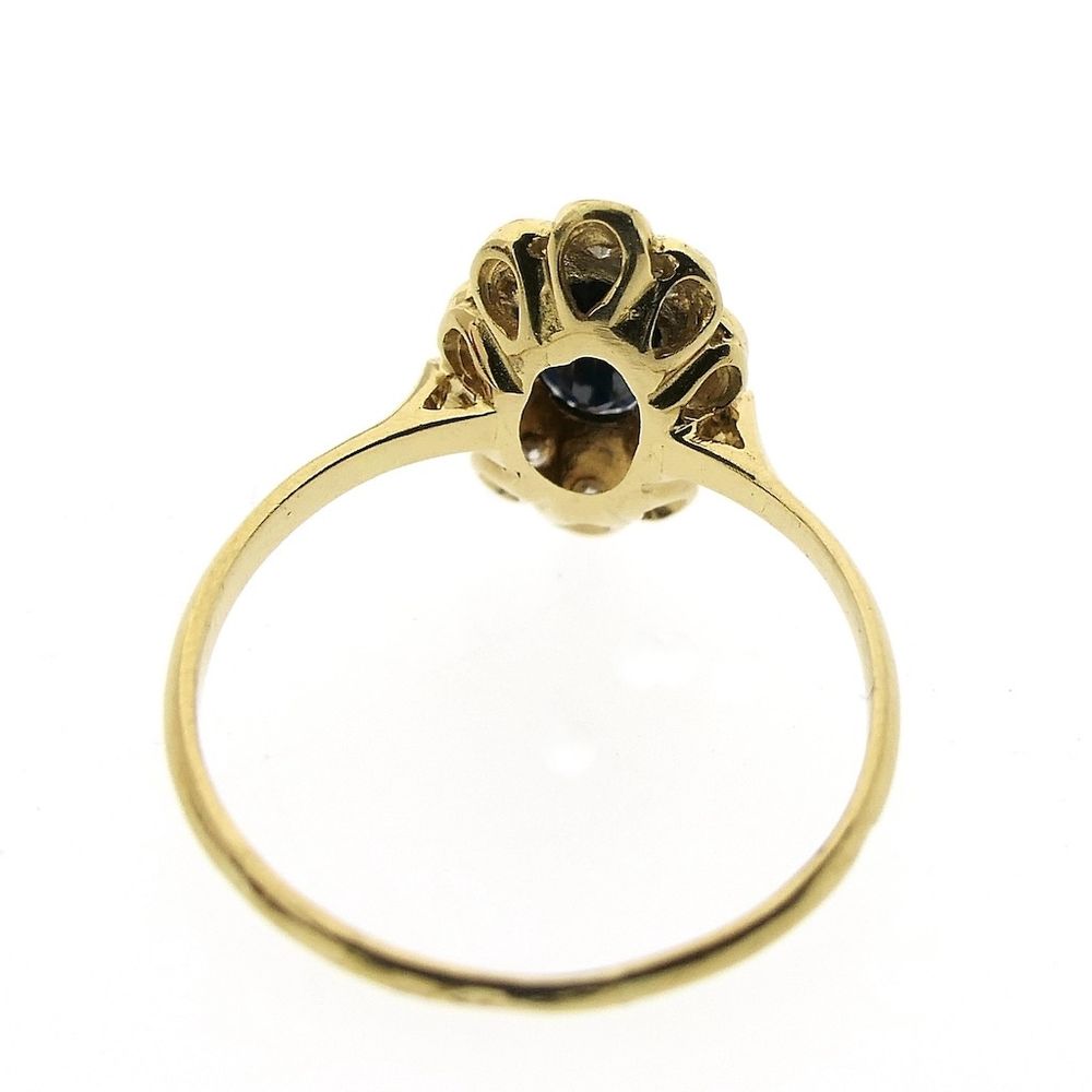 18 carat gold entourage ring with sapphire and diamond