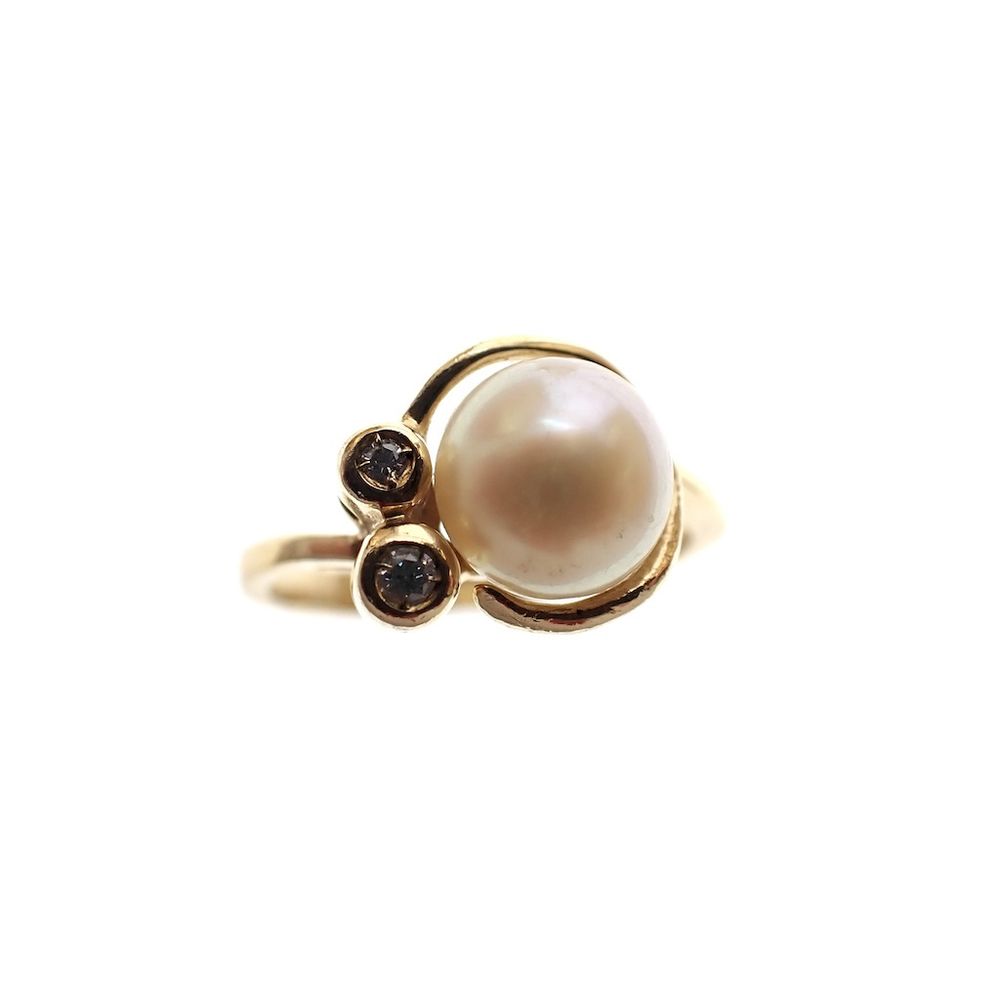 18 carat gold ring with diamond and pearl