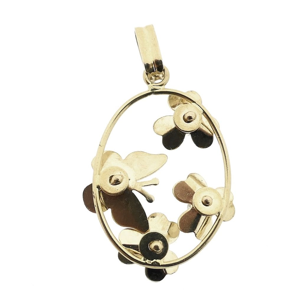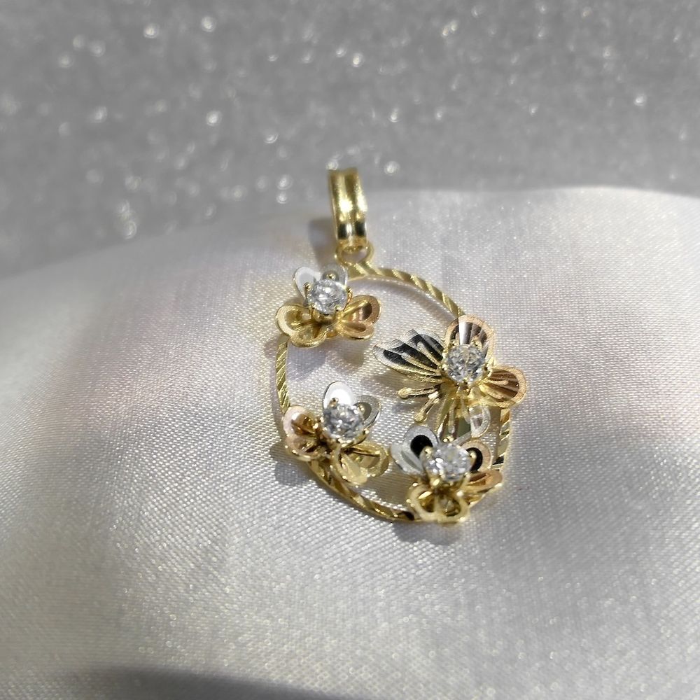 18 carat tricolor gold pendant with flowers and butterflies