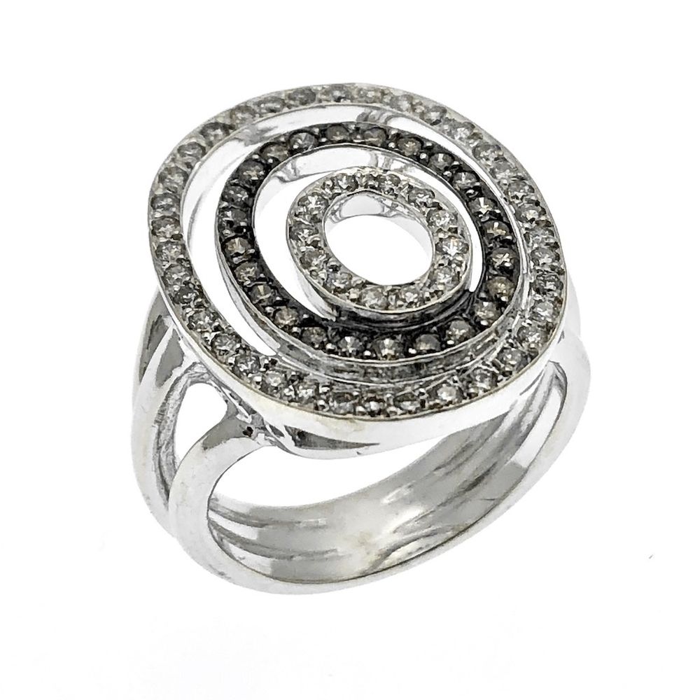18 K. White gold ring with white & black diamonds 0.72 ct.