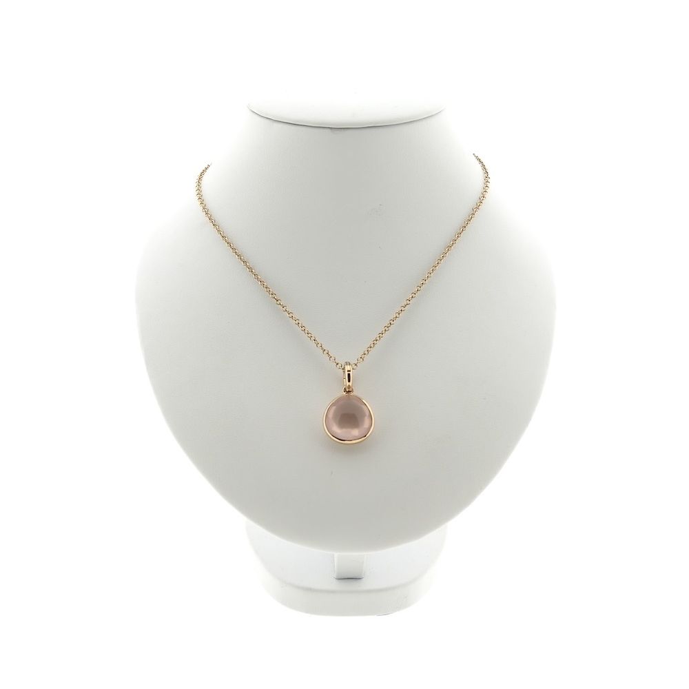 18-karat gold jasseron necklace with a fixed rose quartz pendant; 38.5 cm - 43.5 cm | Tirisi