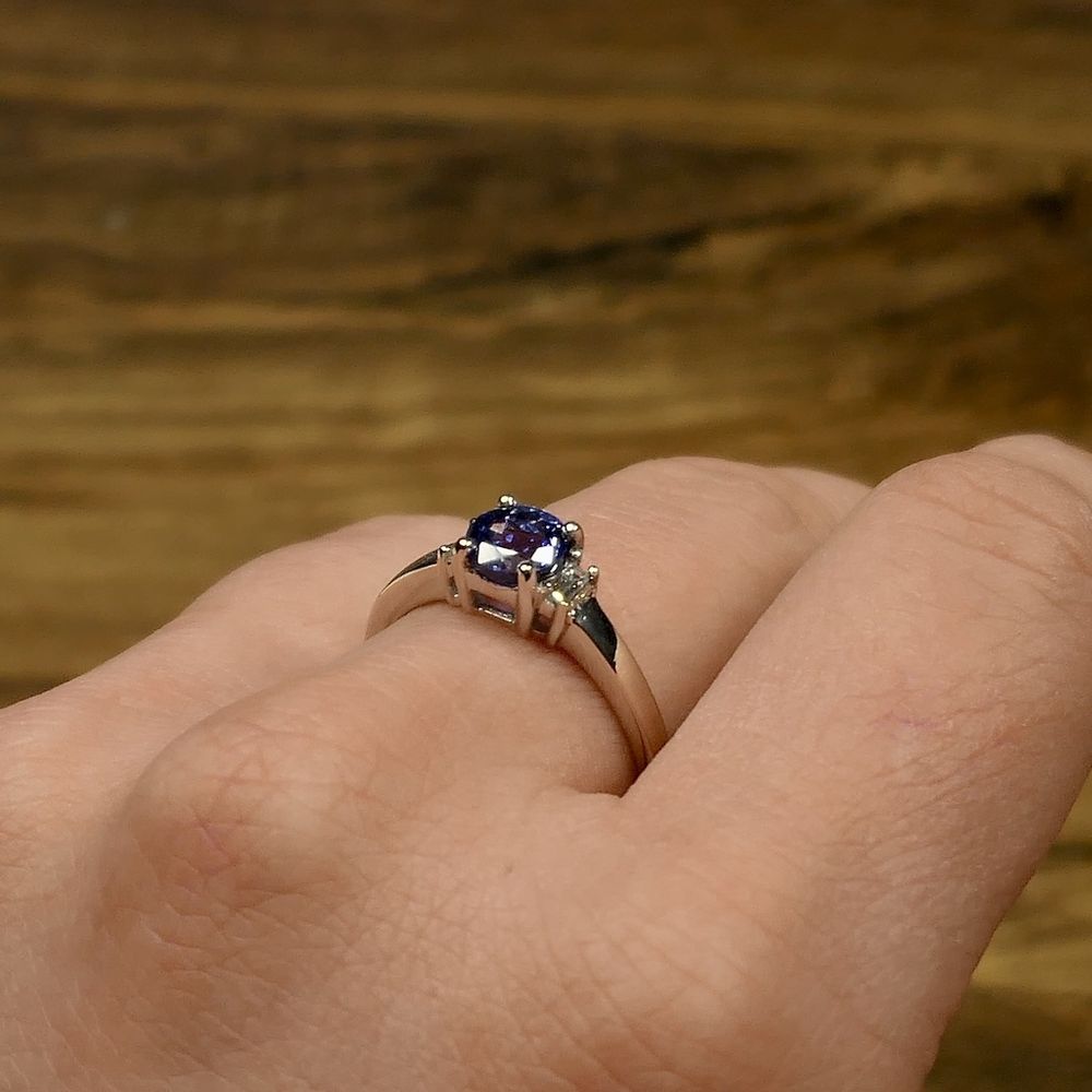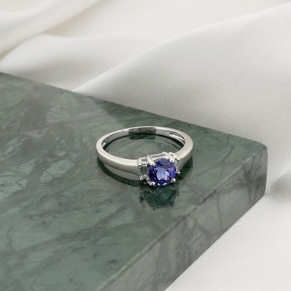 18-karat white gold ring with iolite and diamond | 0.10 ct.