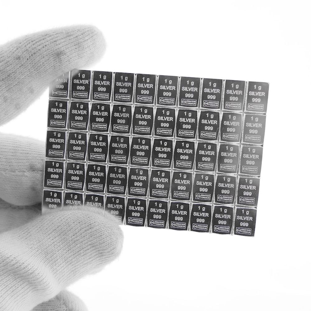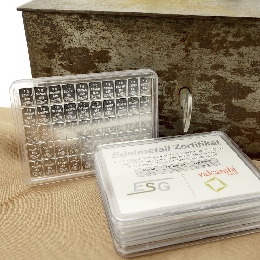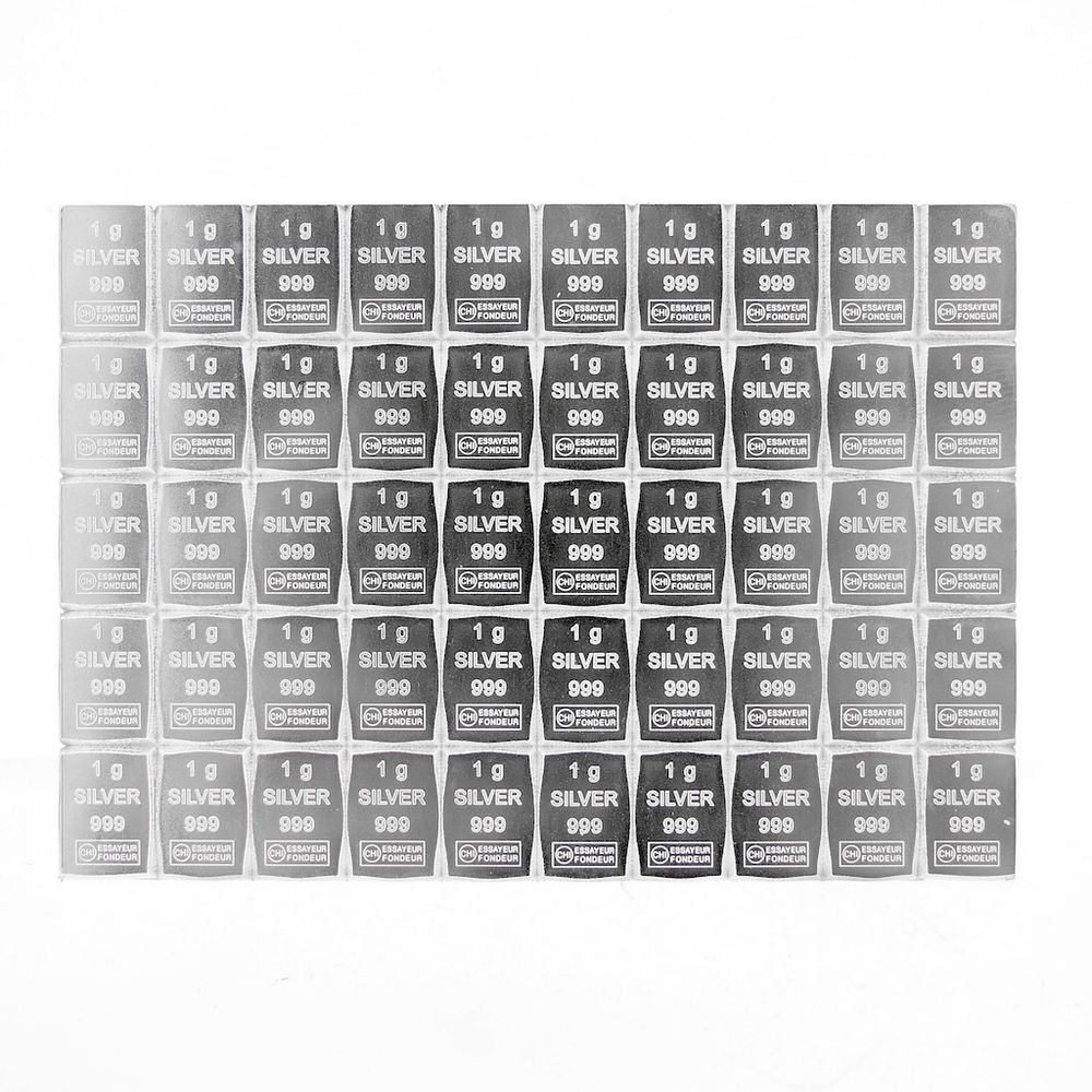 50 x 1 gram silver bar; CombiBar 999 fine silver; Valcambi