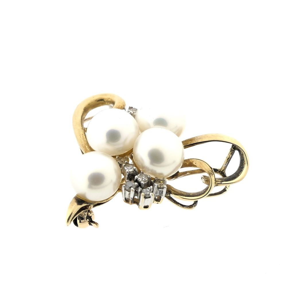 An 8-carat abstract brooch set with cultured pearls and a total of 0.08 ct. diamonds. A beautiful and classic piece to complete your outfit. The brooch is made of 8 carats (333/1000).
