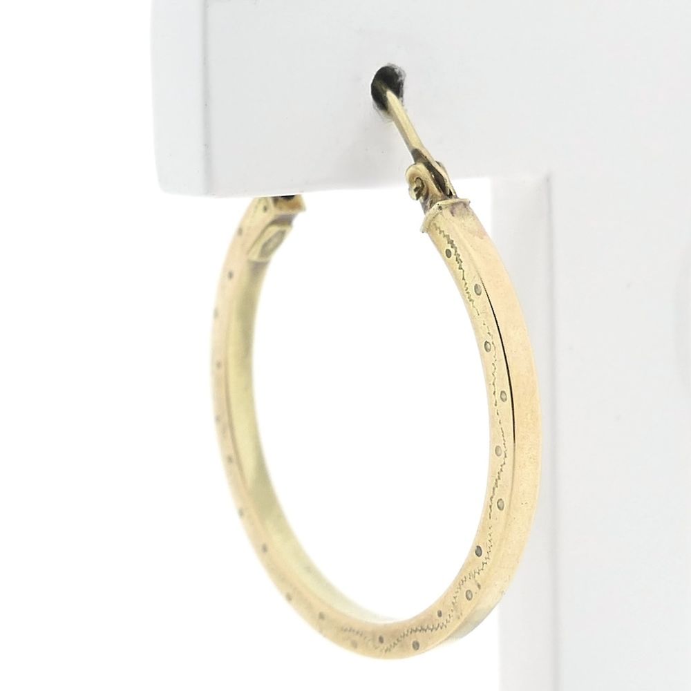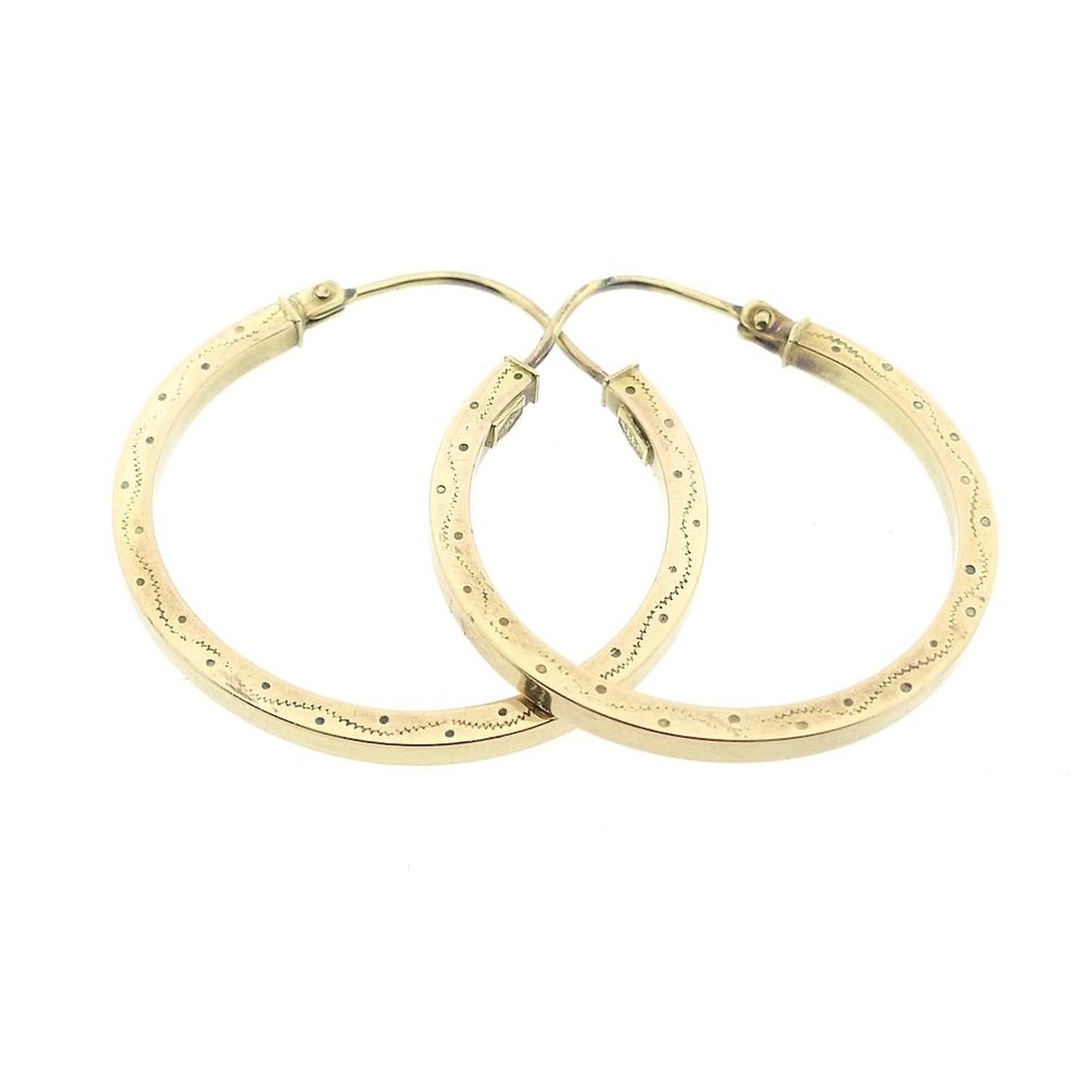 Engraved earrings. These earrings have a hinged closure and are made of 8-carat (333/1000).