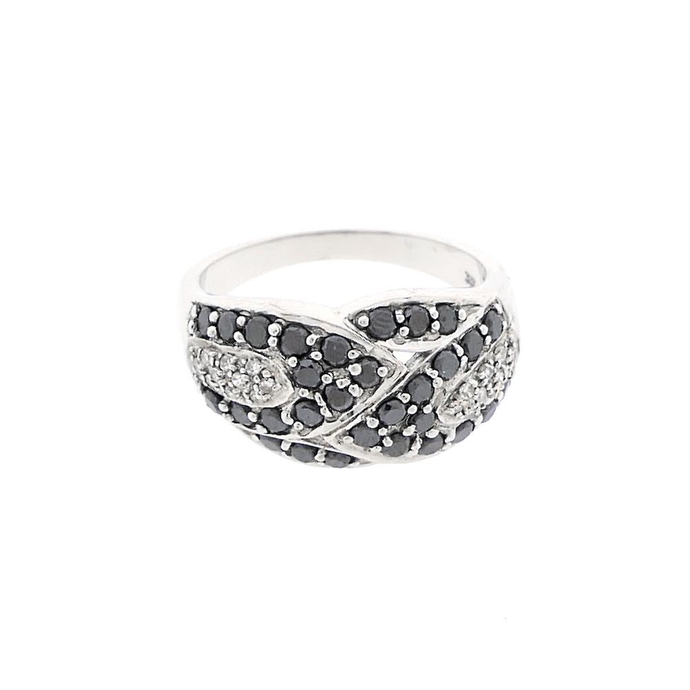 8-carat ring with black moissanite and clear diamonds; 0.55 ct.