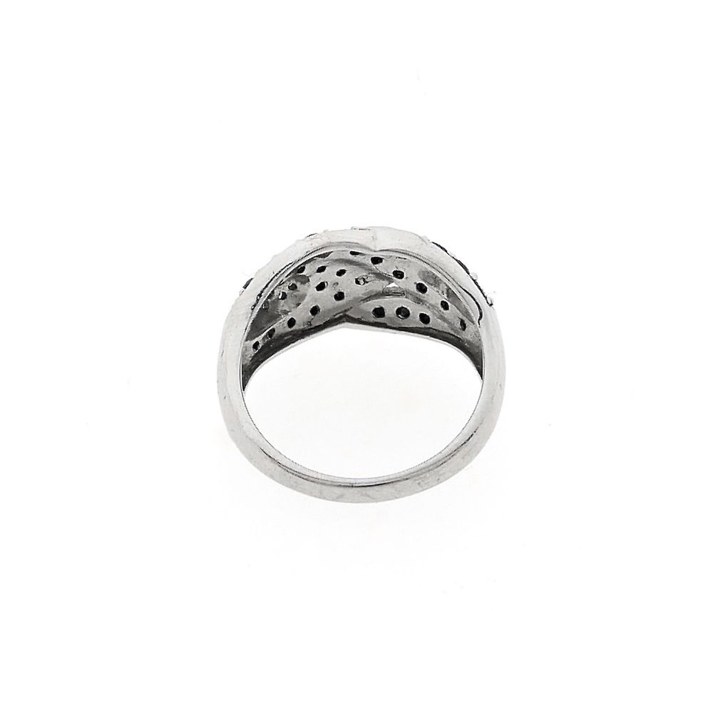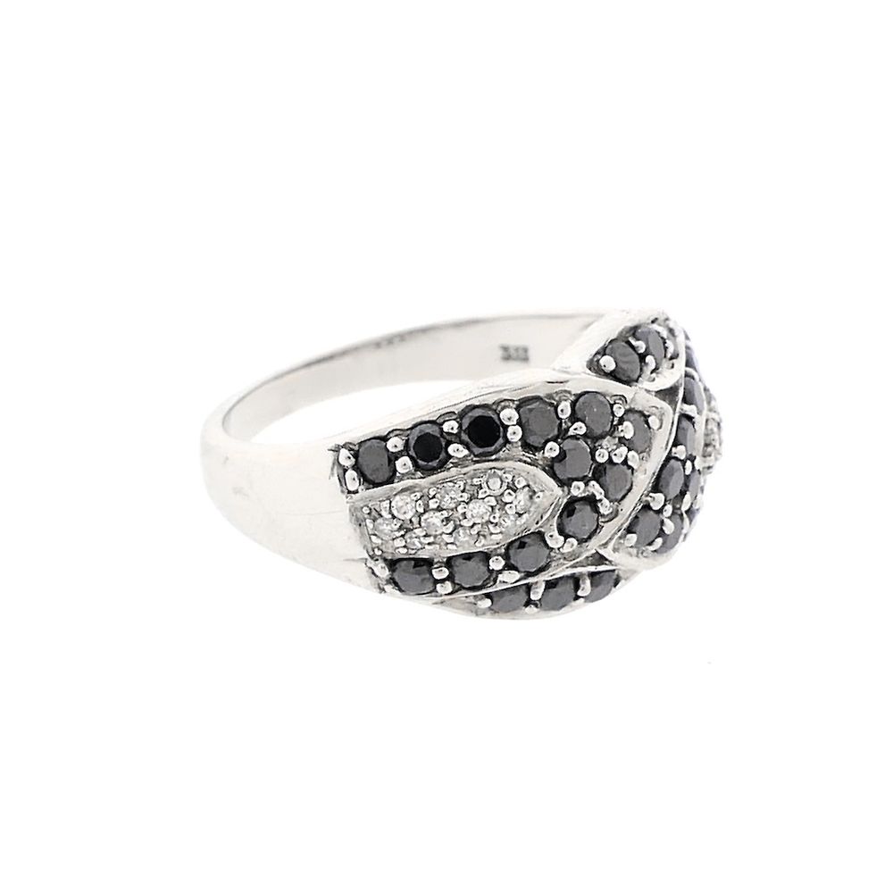 An 8-carat ring set with black moissanite and clear diamonds. The black round brilliant-cut moissanite weighs 0.45 ct in total, and the clear round brilliant-cut diamonds weigh 0.10 ct in total. A beautiful and elegant ring crafted from 8 carats (333/1000).