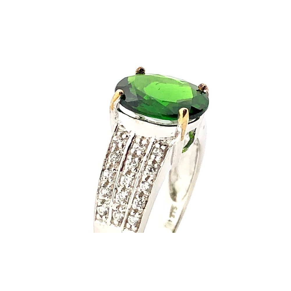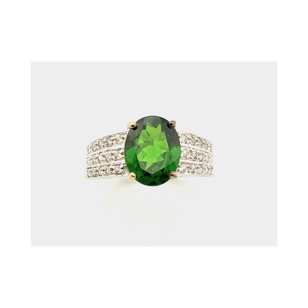 9 carat ring with a green zirconia and zirconia