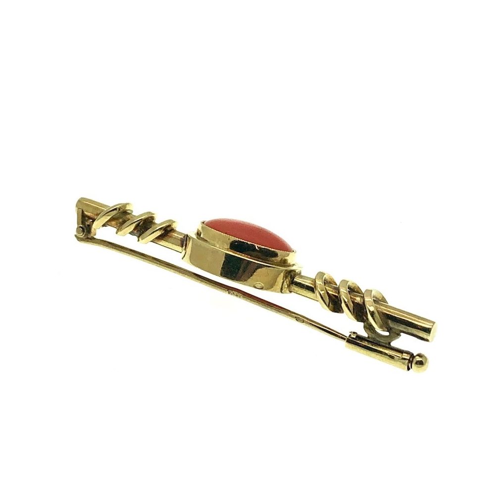 Antique gold brooch with blood coral