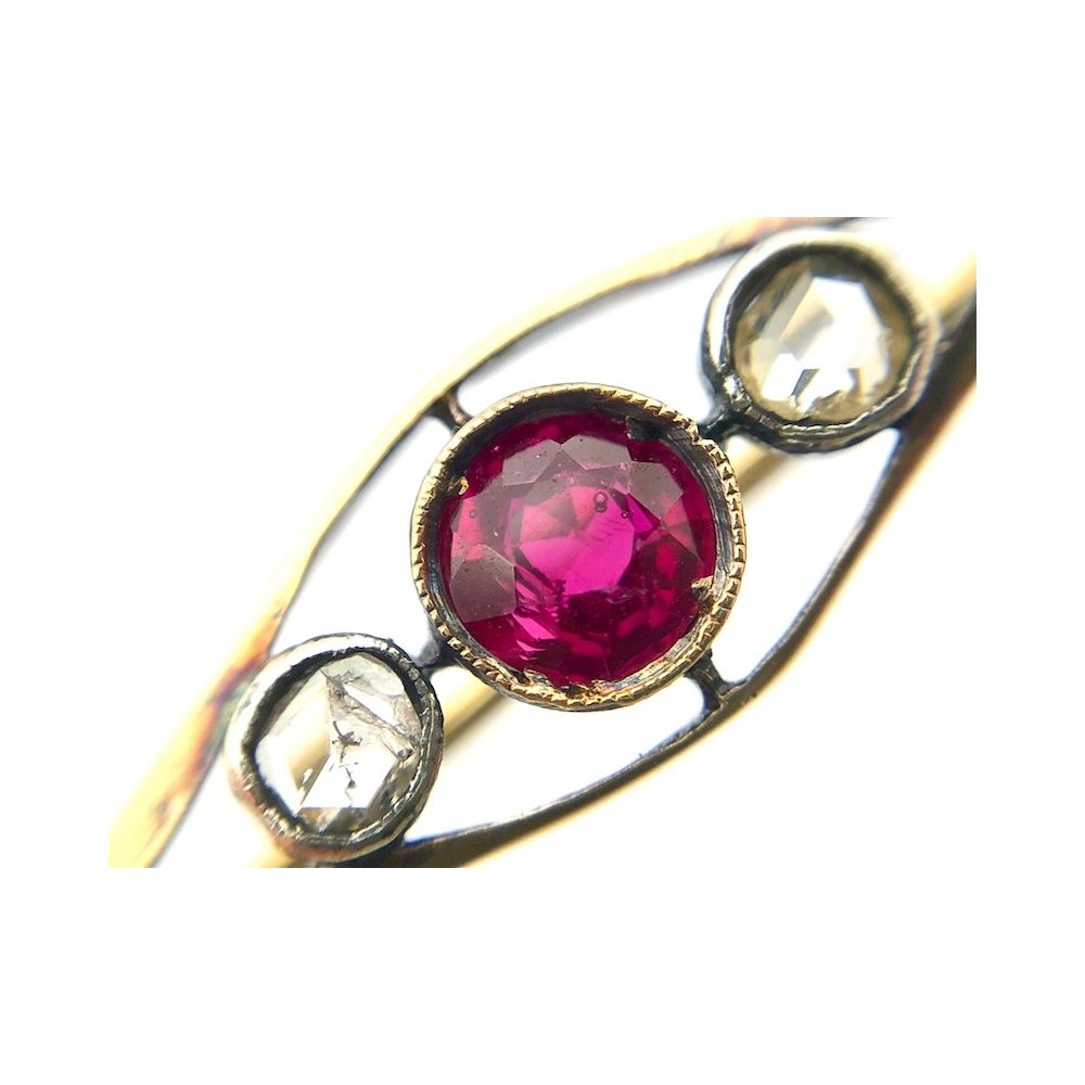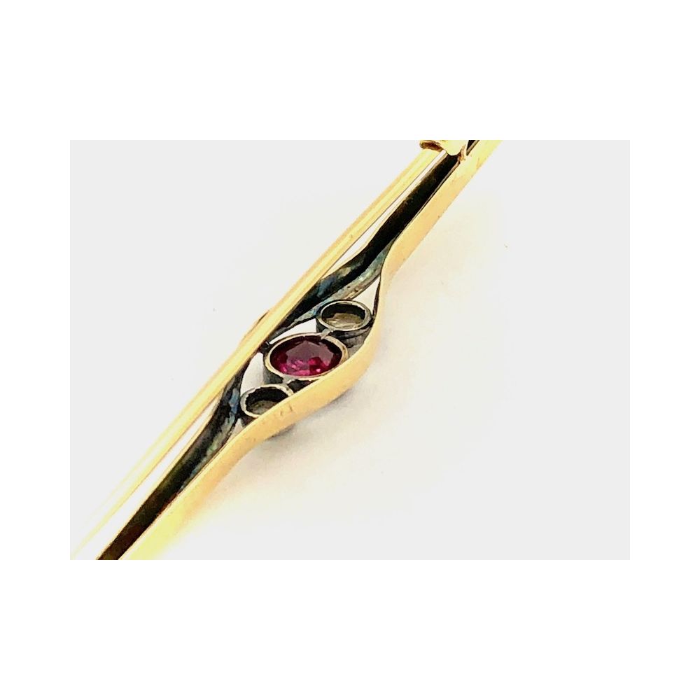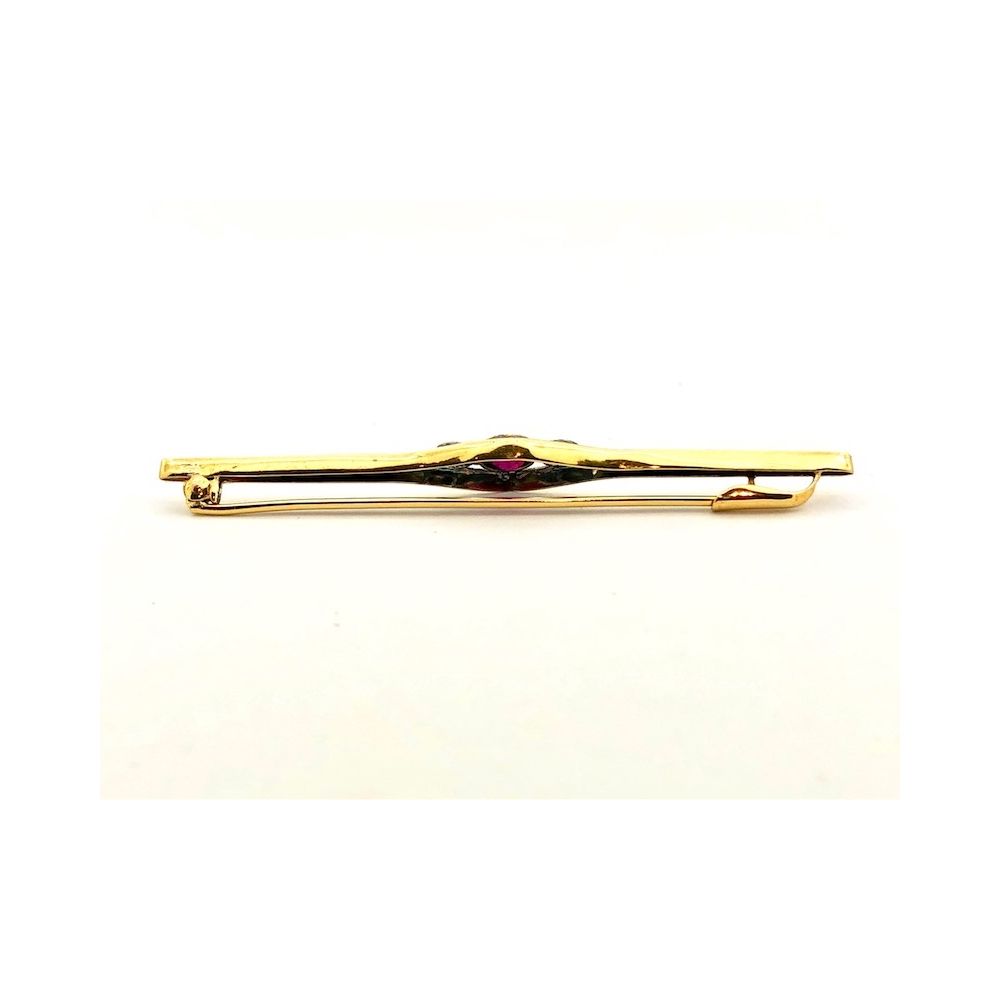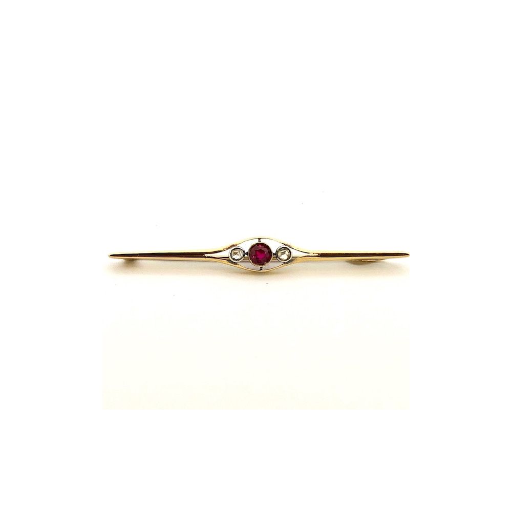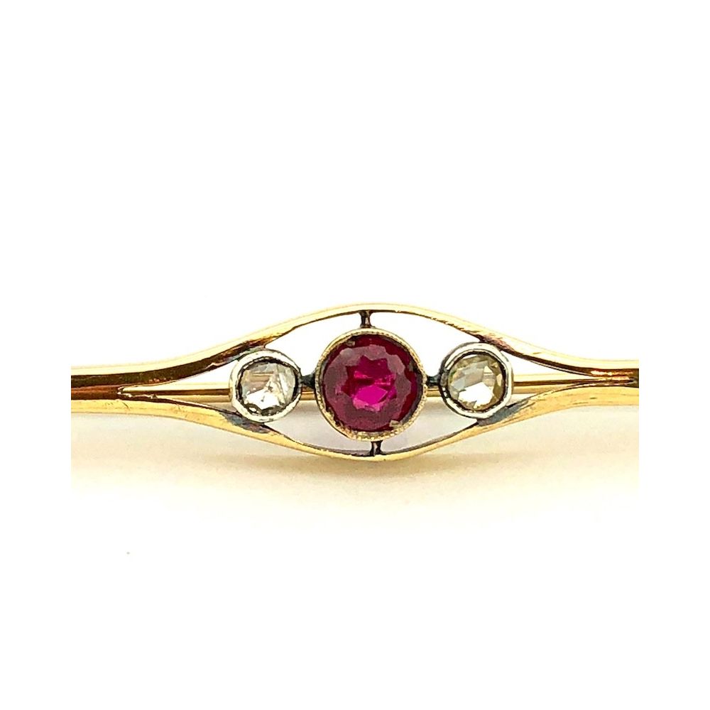 Antique gold brooch with diamond and ruby