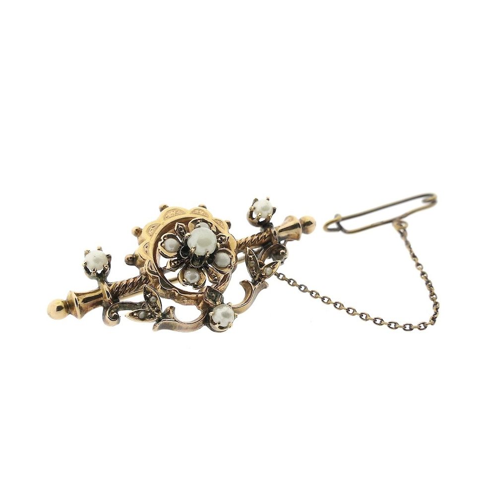 Antique gold brooch with pearl