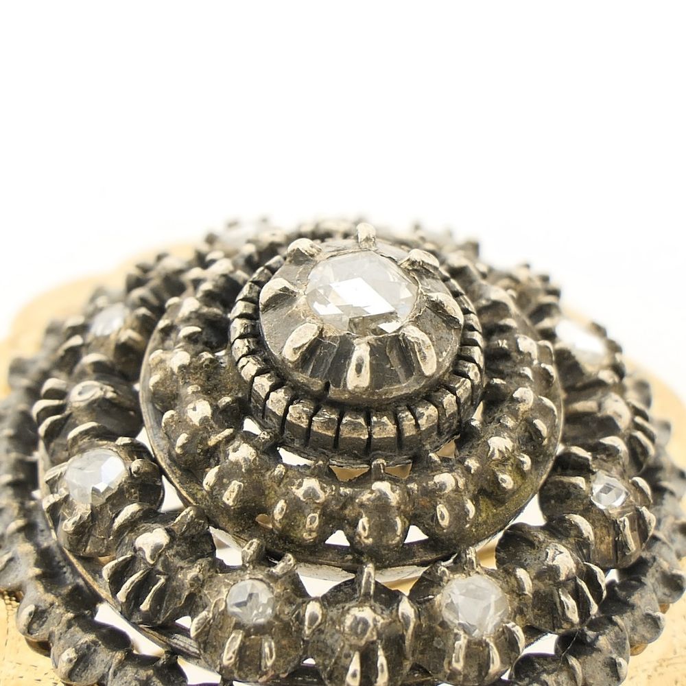 Antique gold brooch with rose-cut diamonds; approx. 0.22 ct.