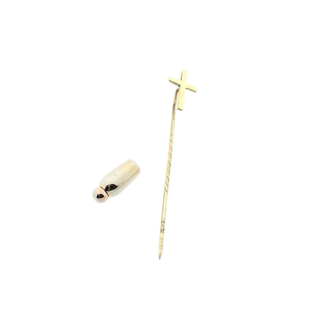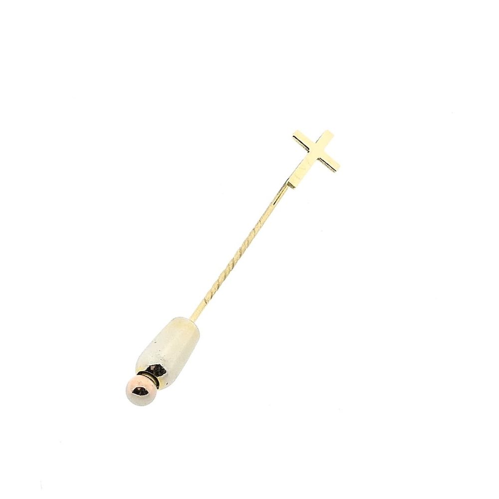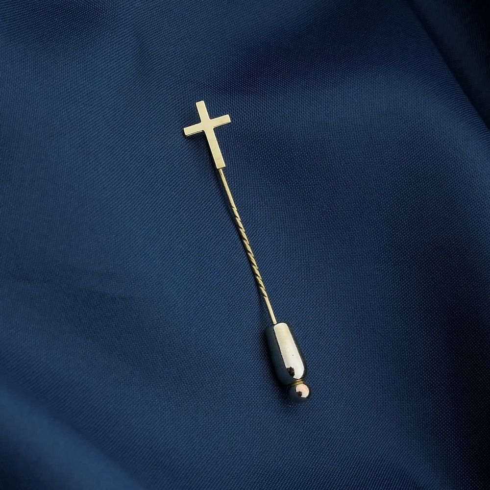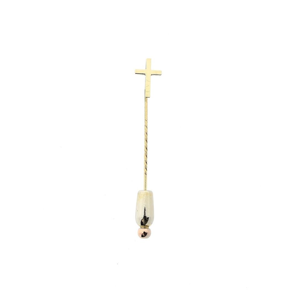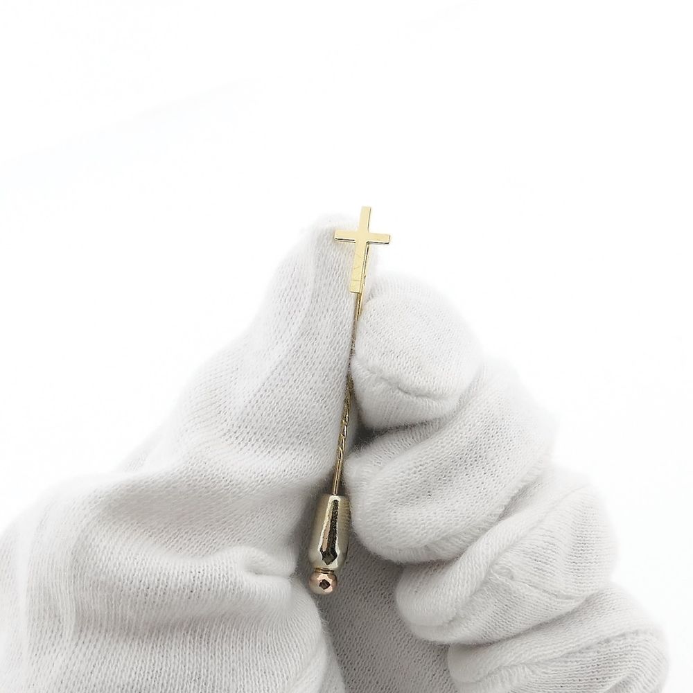 A beautiful gold lapel pin in the shape of a cross. This lapel pin is worn on the lapel of a jacket. It's a lovely antique piece of jewelry that can certainly be worn again today. The pin is made of 14-karat yellow gold (585/1000). The cap is non-precious.