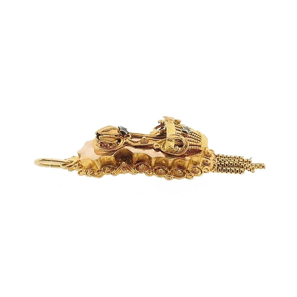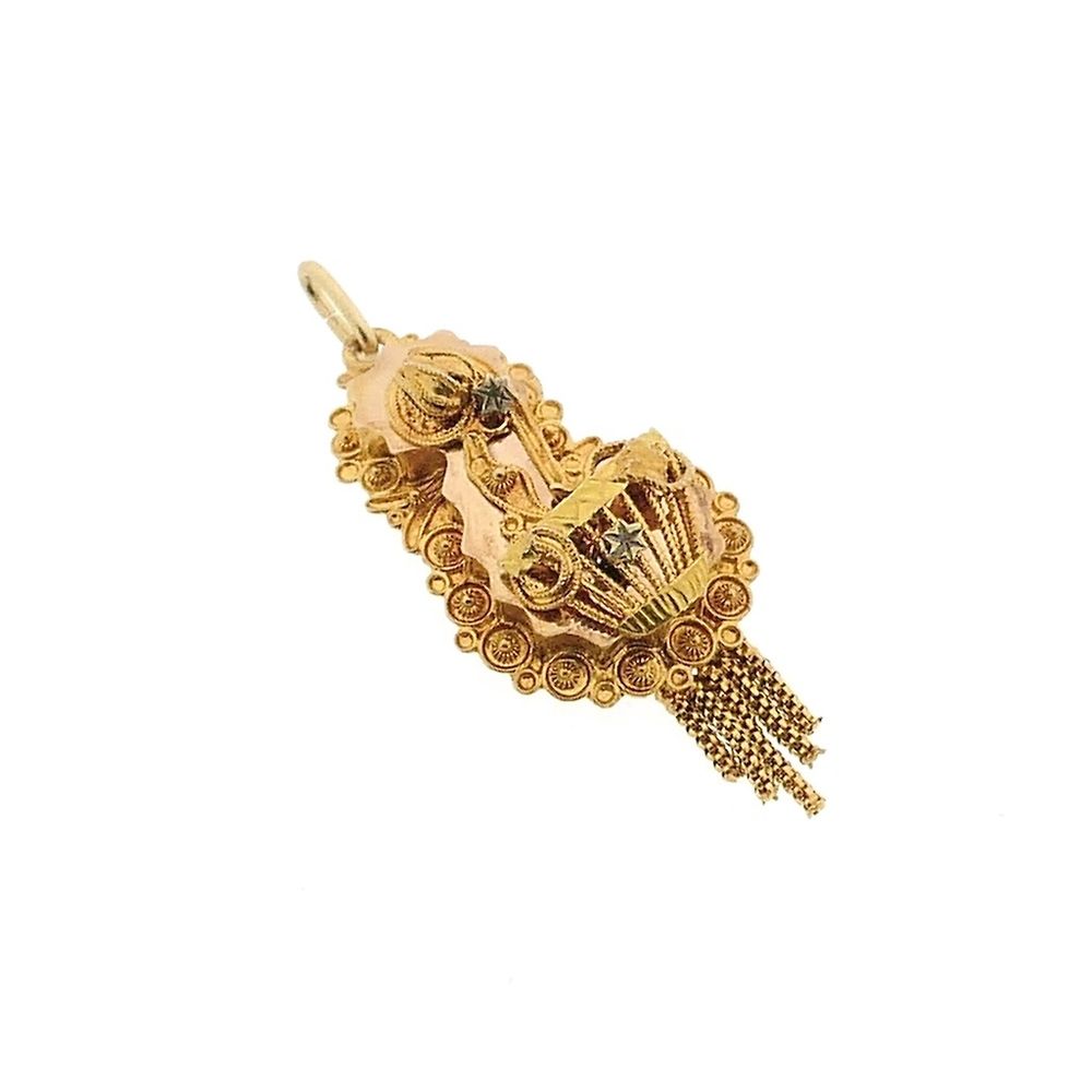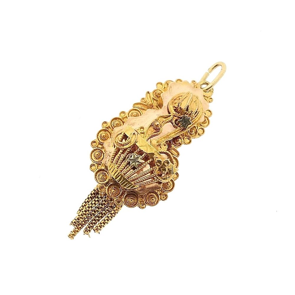Antique gold pendant of a hat bell