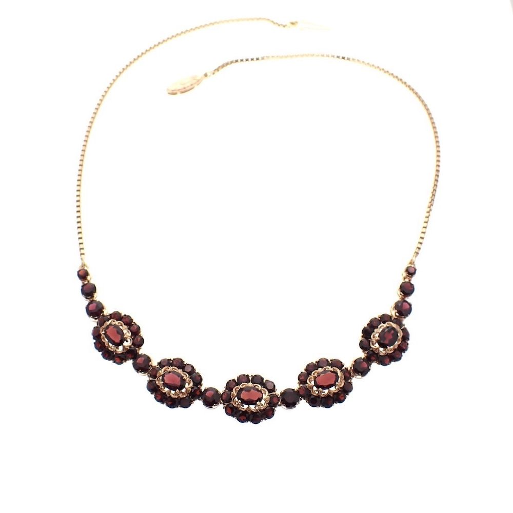 Antique gold Venetian link necklace with garnet