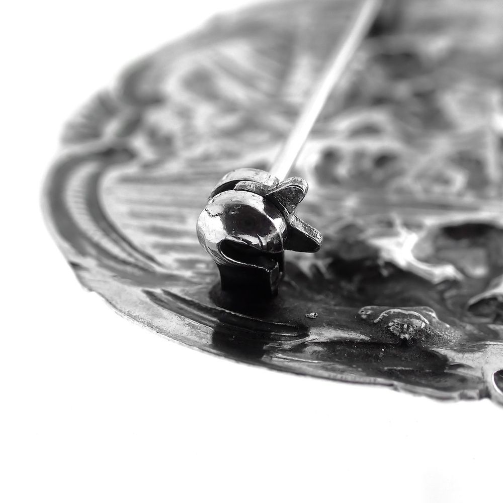 Antique silver brooch with scene
