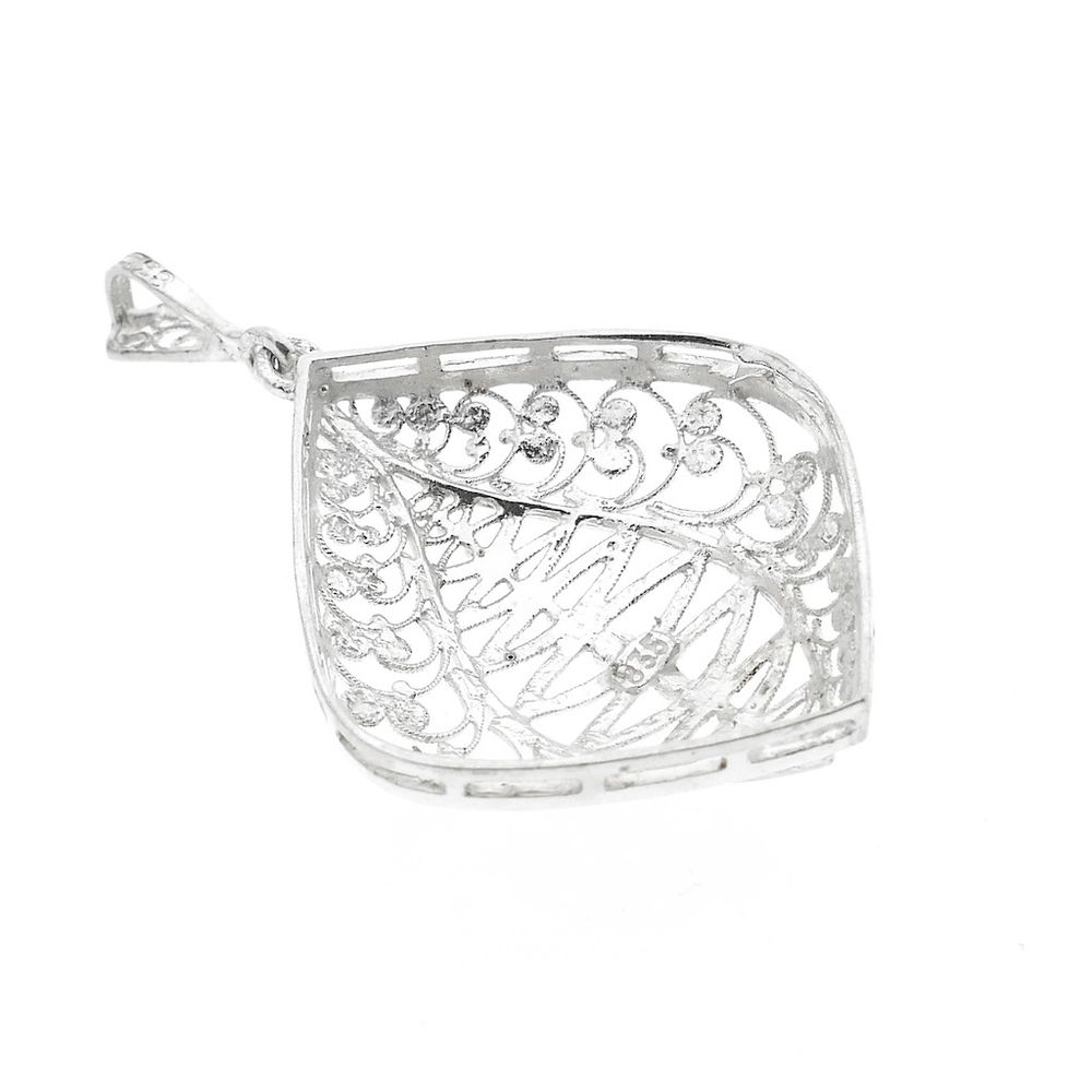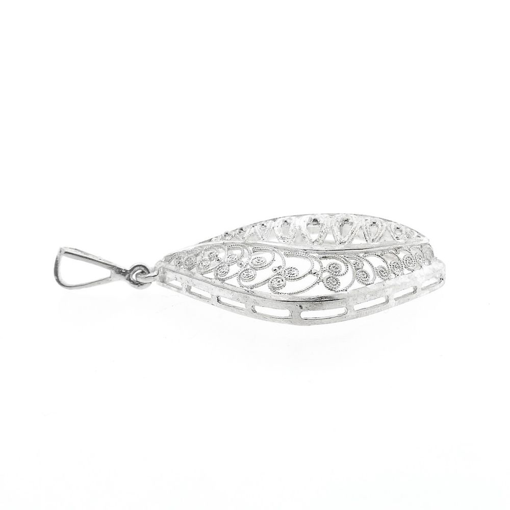 Antique silver pendant with a filigree technique. This technique uses very fine wire to create lace-like patterns. A beautiful pendant with an antique look. The pendant is made of second-grade silver (835/1000).