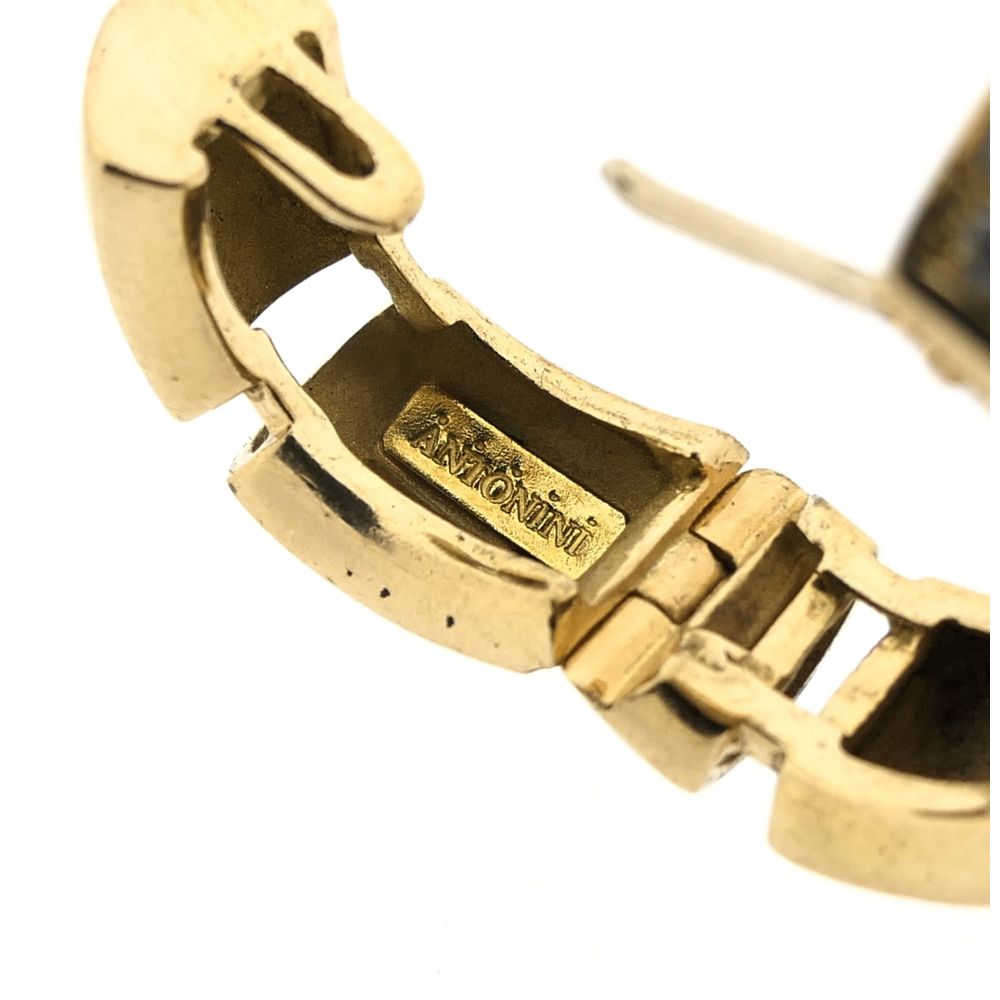Gold earrings from the Atonini brand. The earrings are set with natural round brilliant-cut diamonds. The diamonds are white and have a total weight of 0.78 ct (0.39 ct each). These unique, luxurious, solid earrings are crafted from 18-karat yellow gold (750/1000).