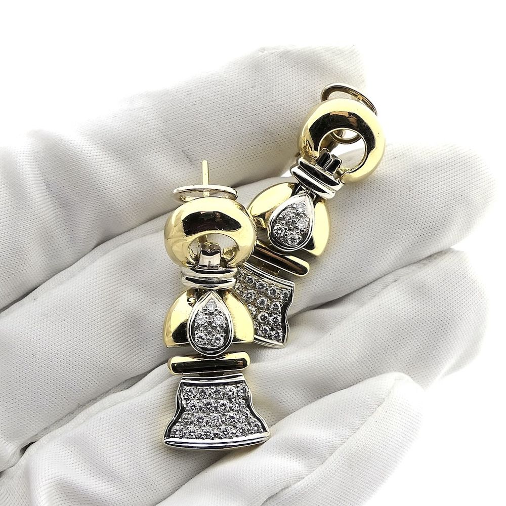Two-tone gold earrings set with round, brilliant-cut natural diamonds. The diamonds have a total weight of 0.75 ct. The earrings are solid and have a luxurious appearance. They are crafted from 18-karat white and yellow gold (750/1000).