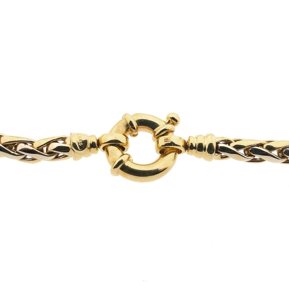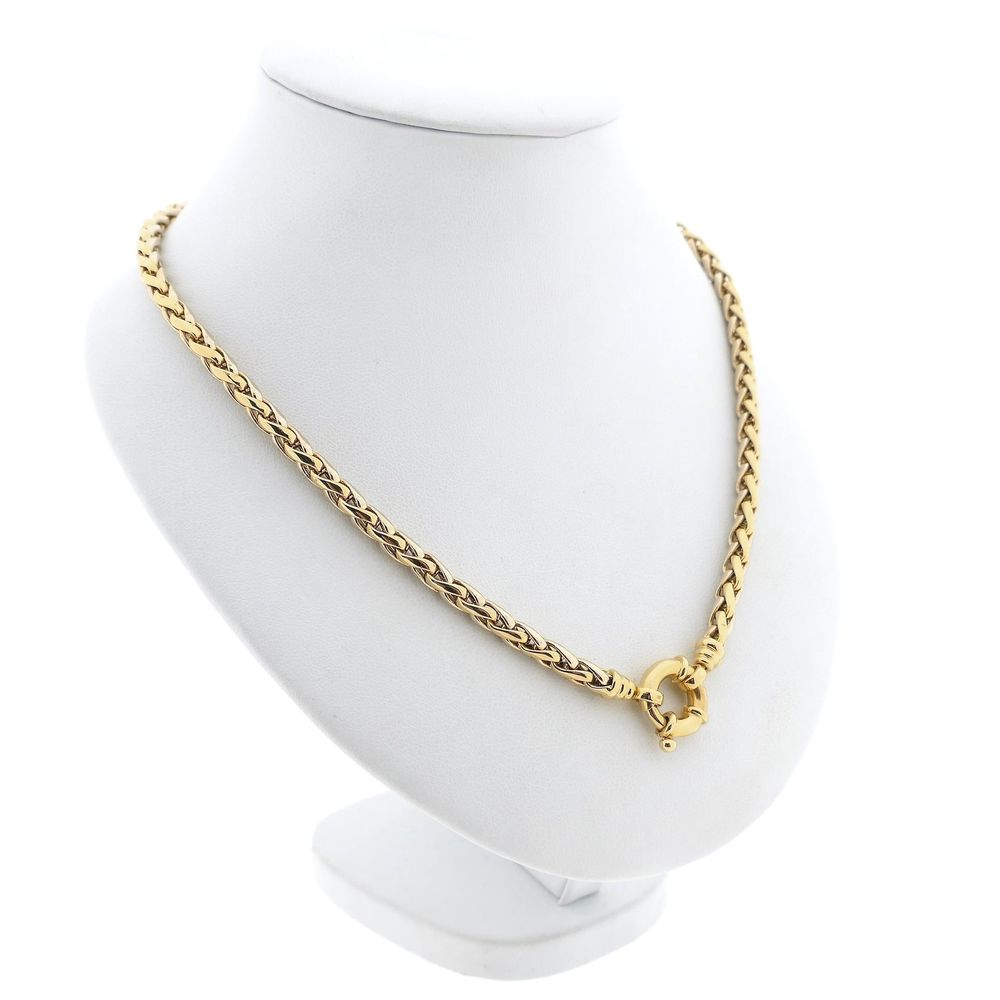 Bicolor gold fox tail link necklace. The necklace features a link width of 4.6 mm and closes with a large spring ring clasp. A beautiful necklace with an elegant and luxurious appearance. The necklace is made of 14 karat white and yellow gold (585/1000).