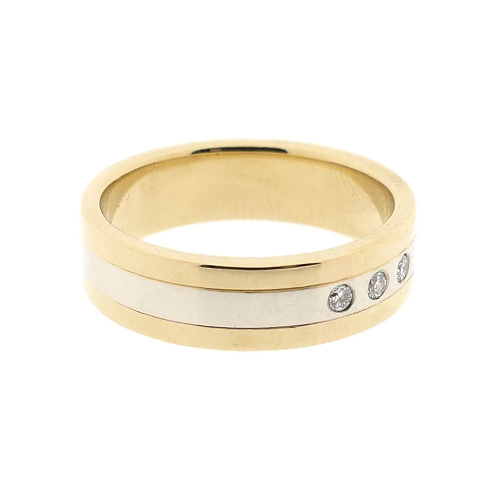Bicolor gold ring with diamond; 0.09 ct.