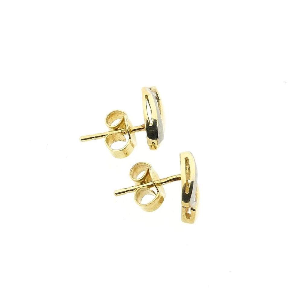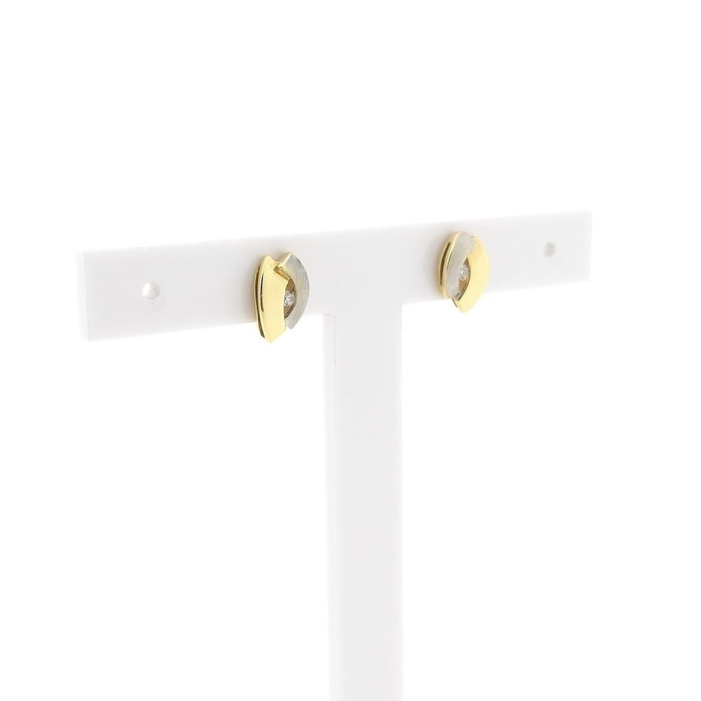 Two-tone gold stud earrings set with a round, brilliant-cut zirconia stone in the center. A subtle pair of stud earrings crafted from 14-karat white and yellow gold (585/1000).