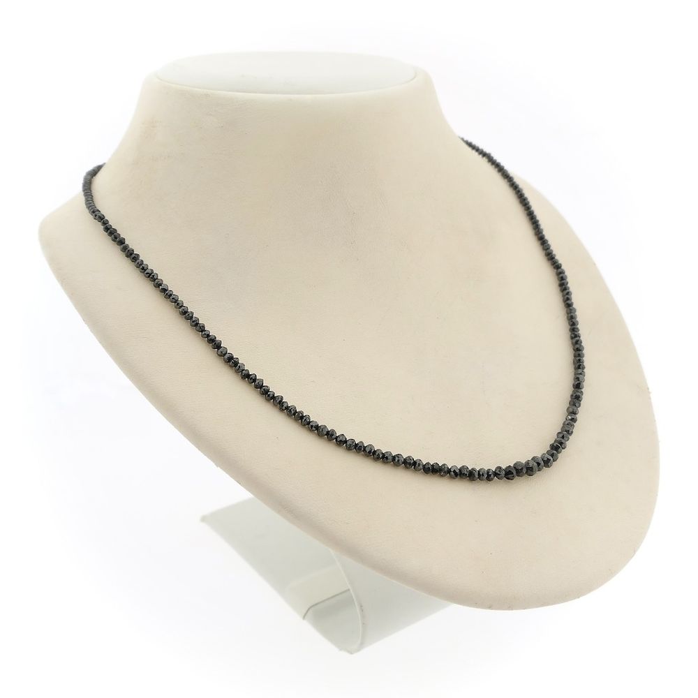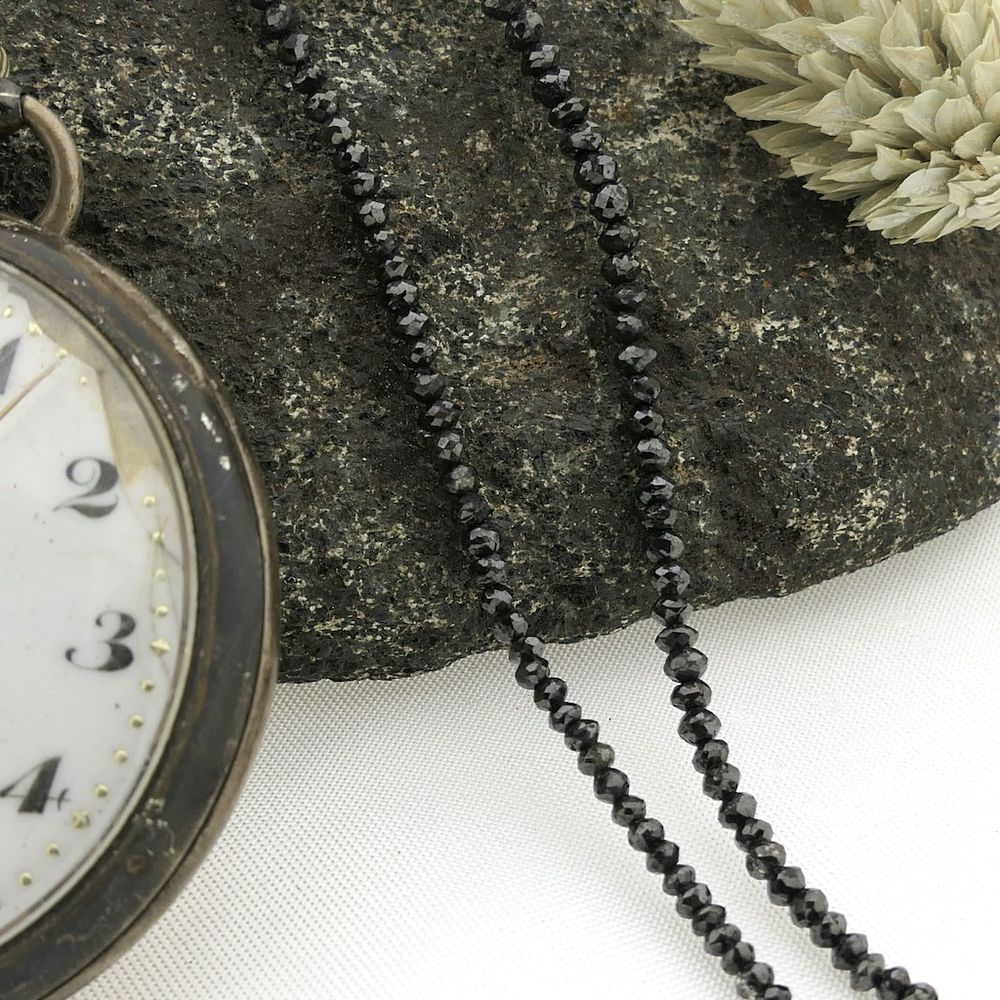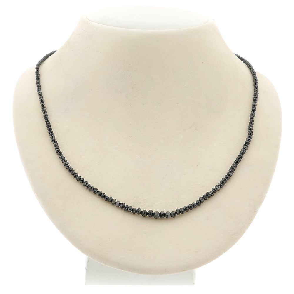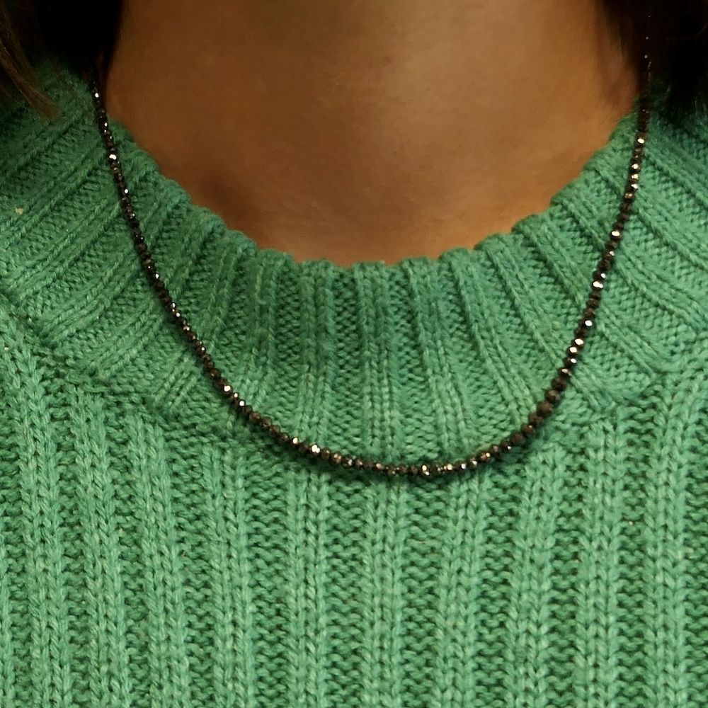Black diamond bead necklace with gold clasp