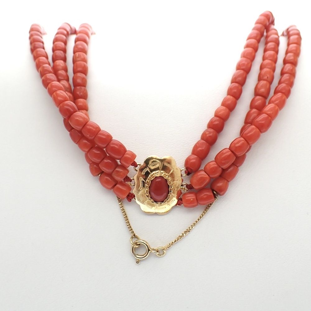 Blood coral bead necklace with gold clasp; Antique | 38 cm