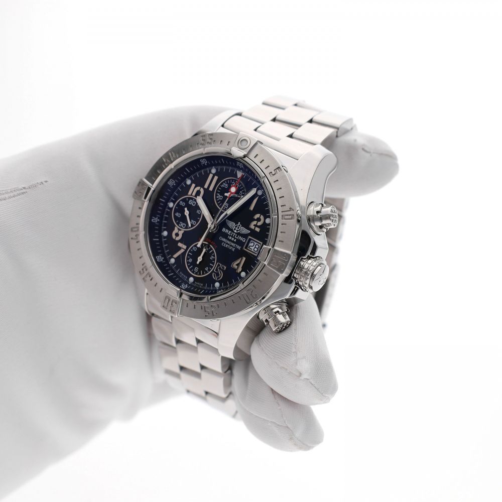 A rugged and professional Breitling chronograph with strong specifications and complete documentation. Thanks to the recent service and full set, this is a highly attractive piece.
