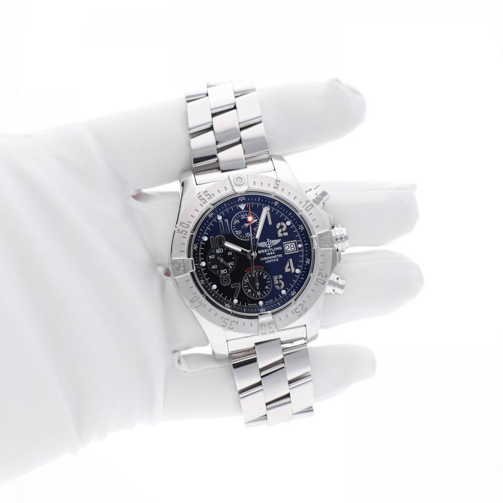 The Breitling Avenger Skyland A13380 is a robust and sturdy pilot’s chronograph from the professional Avenger line of Breitling. This model is known for its solid size, excellent readability, and reliability in all conditions.