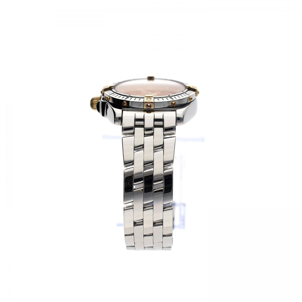 This Breitling Callistino Ref. B77346 is a stylish and refined women’s watch with a beautiful balance between sportiness and elegance. The warm bronze/copper-colored dial gives the watch a distinctive look and adds just a bit more character than the more common variants. In combination with the 18-carat yellow gold and steel case, it creates a timeless two-tone design that is both chic and daily-wearable.