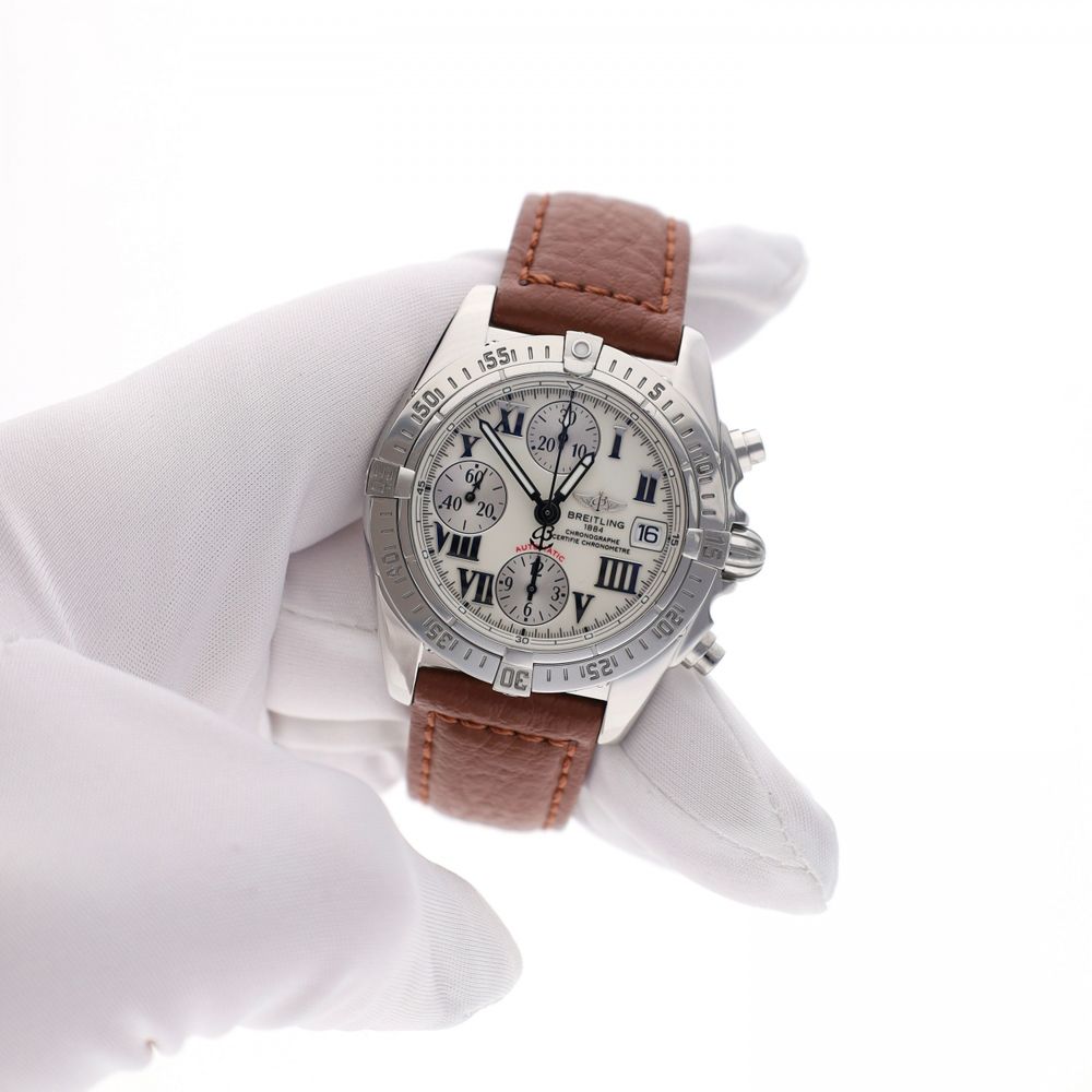 Inside, it operates the automatic Breitling Caliber B13, a chronometer-certified movement renowned for its reliability and precision. The chronograph function and date display also make this watch practical for daily use. The movement has been fully tested and runs excellently and very accurately.