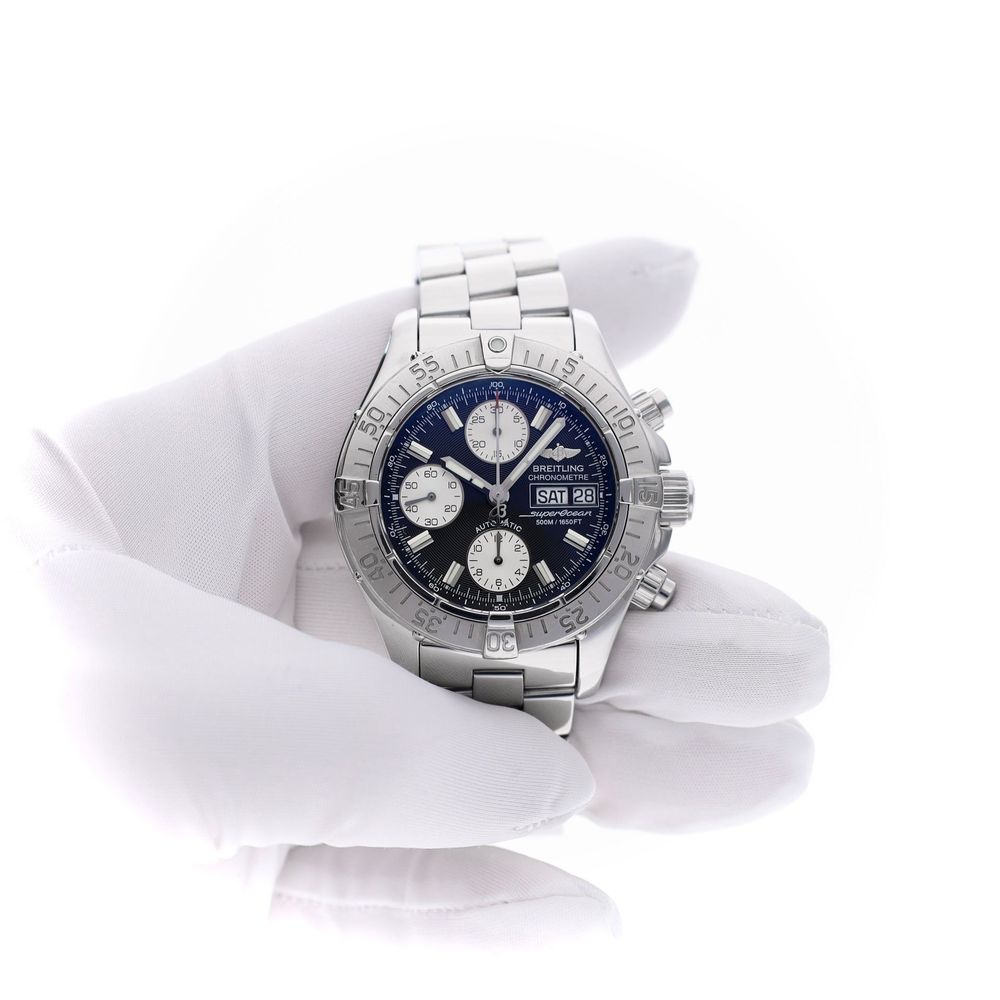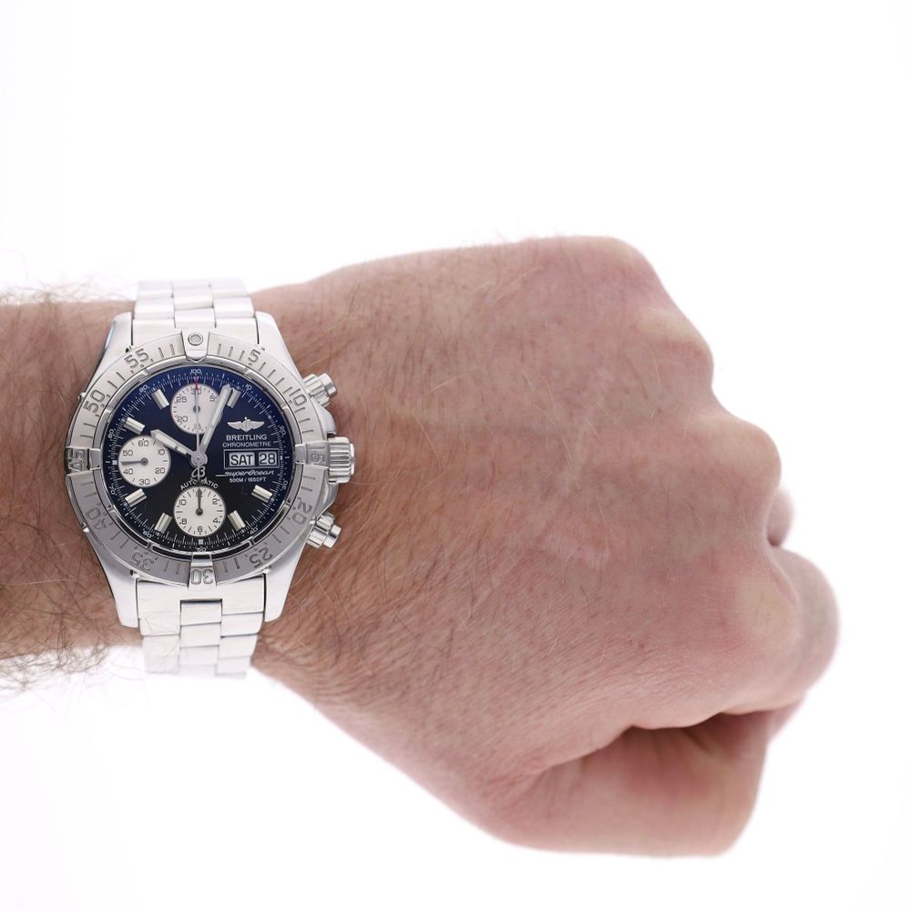 The Breitling SuperOcean Chronograph (Ref. A13340). A robust men's chronograph watch and already a true Breitling classic. This is the diving watch of the Breitling brand in a beautiful sporty chronograph version. A stunning model featuring a high-quality Swiss Chronometer Certified automatic movement and a premium stainless steel Breitling Professional II bracelet.
