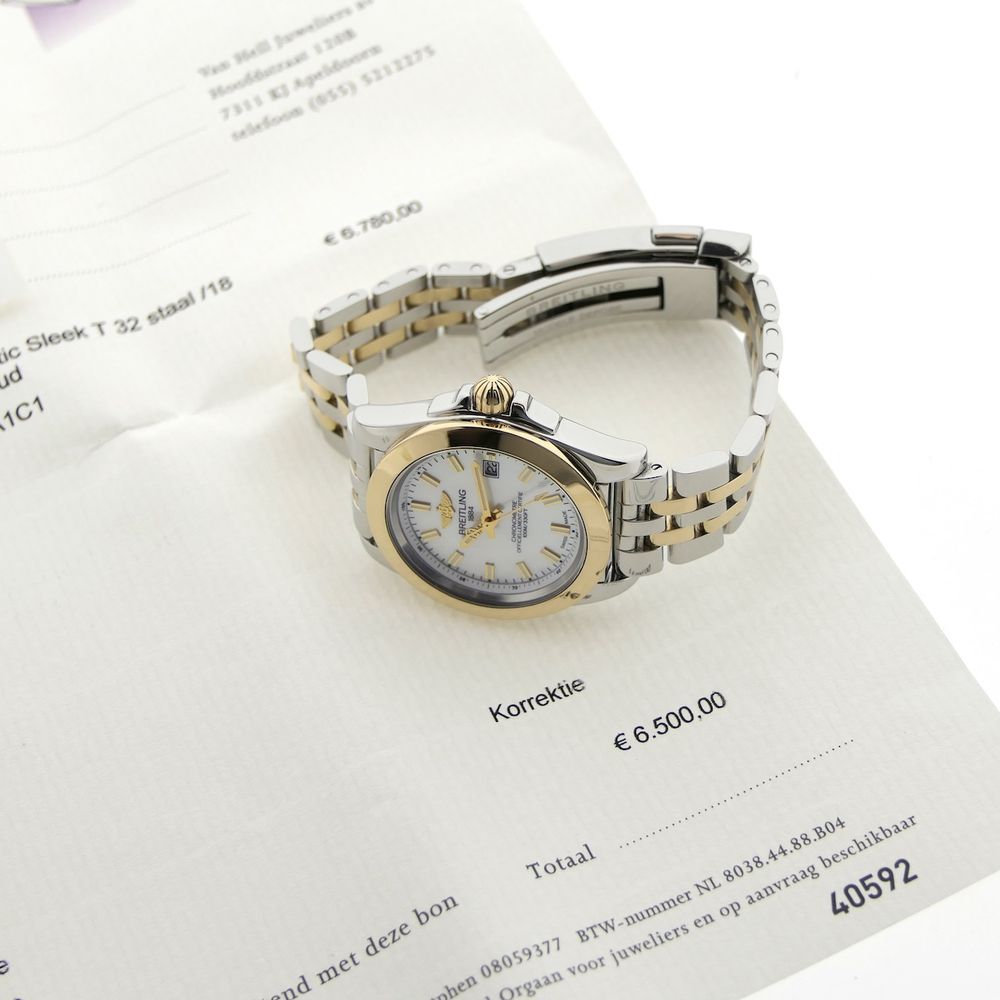 Breitling Galactic 'Sleek' C71330; Gold/steel women's watch with mother-of-pearl dial