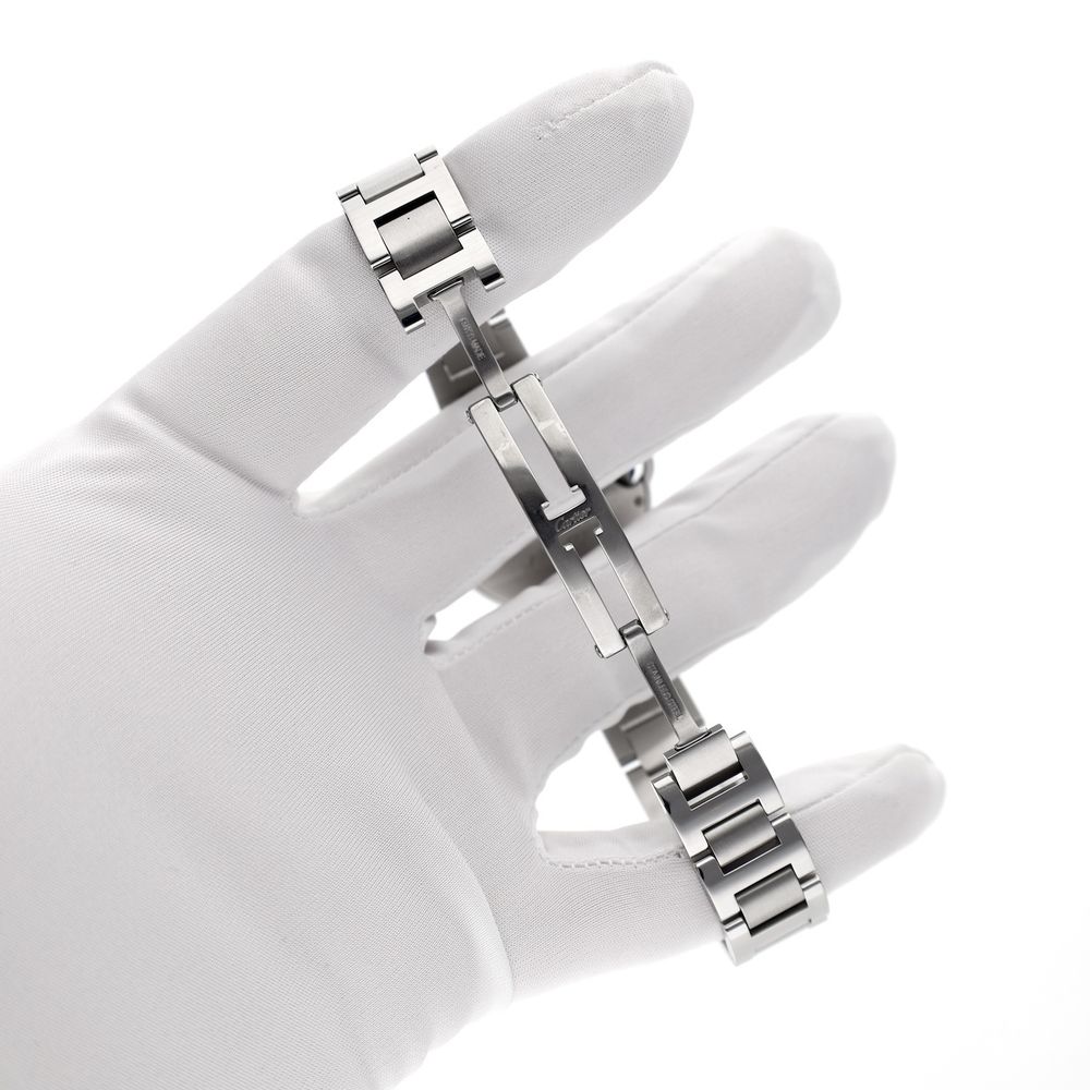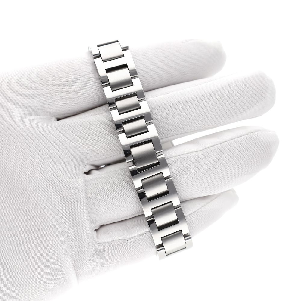 Beautiful and exclusive, the popular Cartier Ballon Bleu Automatic with a diamond dial. A stylish and distinctive women's watch in a beautiful 33mm size: striking, comfortable, and not too large. A timeless Cartier watch with signature blued hands and a typical blue sapphire on the crown. The silver-gray guilloché dial is strikingly beautiful, features an original Cartier diamond setting, and makes it a chic piece for every day! The current retail price for a comparable model is over €8,000, so you're guaranteed a top deal. The "Ballon Bleu" line by Cartier is the well-known line of this high-quality and exclusive Swiss jewelry and watch brand. A jewelry house with a long and rich history of crafting top-quality jewelry. This watch features a high-quality and reliable Swiss automatic movement that runs perfectly. Not surprising, as the watch dates from around 2014/2015 and has been fully inspected and adjusted by our Cartier-certified specialists. The original steel Cartier bracelet with folding clasp is in excellent condition, just like the watch itself. It fits wrists up to approximately 18cm, making it suitable for most women's wrists (or narrow men's wrists). The bracelet shows no stretch or wear and can, of course, be custom-made/delivered by us. This watch comes with a luxury in-house box and a warranty report with a 1-year guarantee.