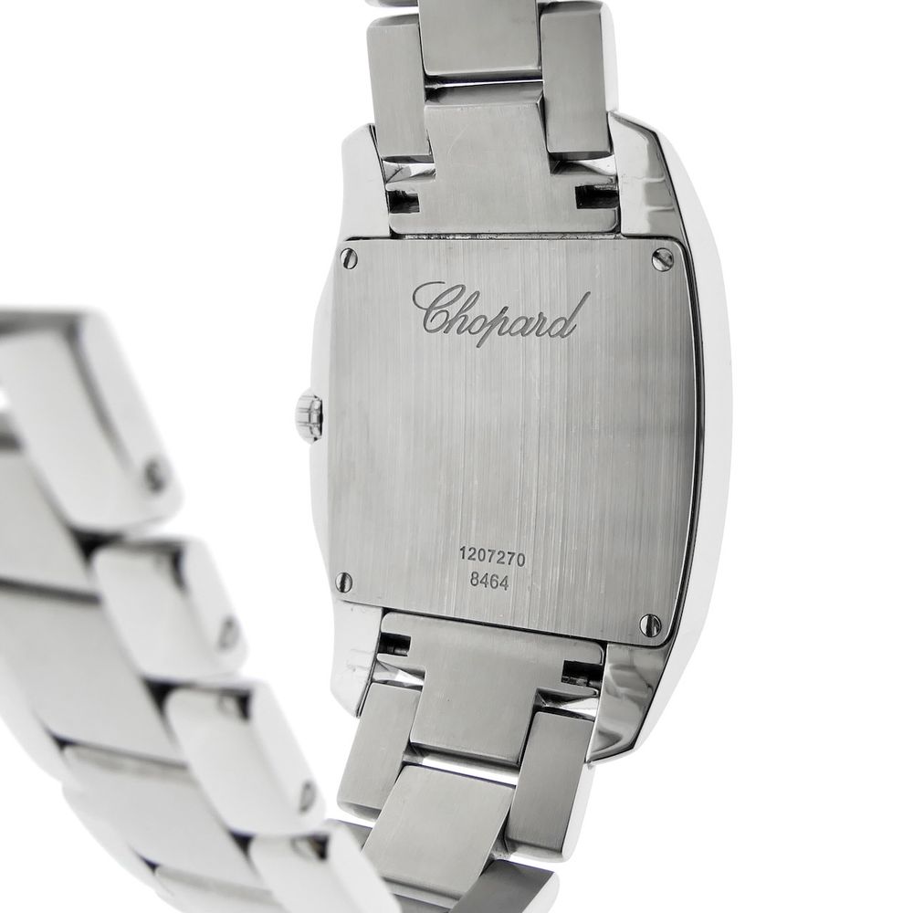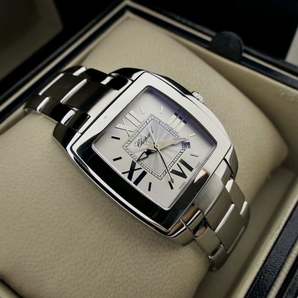 Beautiful and especially wearable Chopard 'Two O Ten' watch made of steel. This watch has reference numbers 8464 and 118464-3001. This is a beautiful steel model from the Swiss jewelry house Chopard and is absolutely top-notch! A fairly large watch originally intended for women, but certainly also suitable for men. With a diameter of 34.5mm x 45mm, it is a very comfortable unisex watch. Timeless, chic, and strikingly beautifully made. This watch is from 2017 and comes as a beautiful full set. The invoice from 2017 is included; €3100 was paid for it at the time. Chopard is one of the world's leading haute couture & horlogerie manufacturers from Switzerland. Absolutely top-class jewelry and watches in the highest segment with very high new prices. Inside, a high-quality Swiss Chopard quartz movement that works perfectly and was fitted with a new battery in 07-2024. The timepiece will keep accurate time for years to come. This watch features the original Chopard steel bracelet in excellent condition, without any stretch or play. It is a true work of art and completes the watch as a whole. The bracelet fits wrists of up to approximately 19cm. We can, of course, make/deliver it to size. This 2017 watch comes as a beautiful full set, including: a luxurious Chopard box, outer box, Chopard warranty papers, a 2017 purchase receipt, and an in-house warranty report with a 1-year warranty.