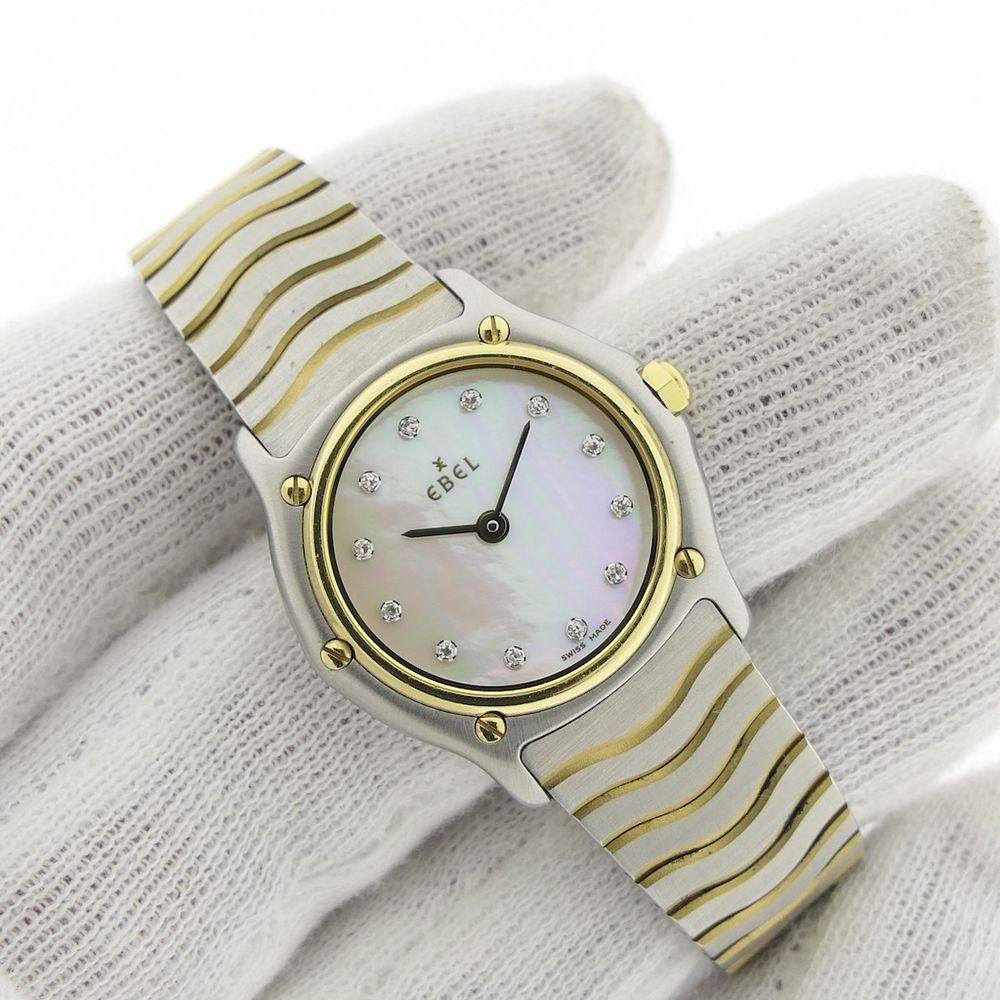 Ebel Wave 'Mother of Pearl'; Gold/steel women's watch with diamonds