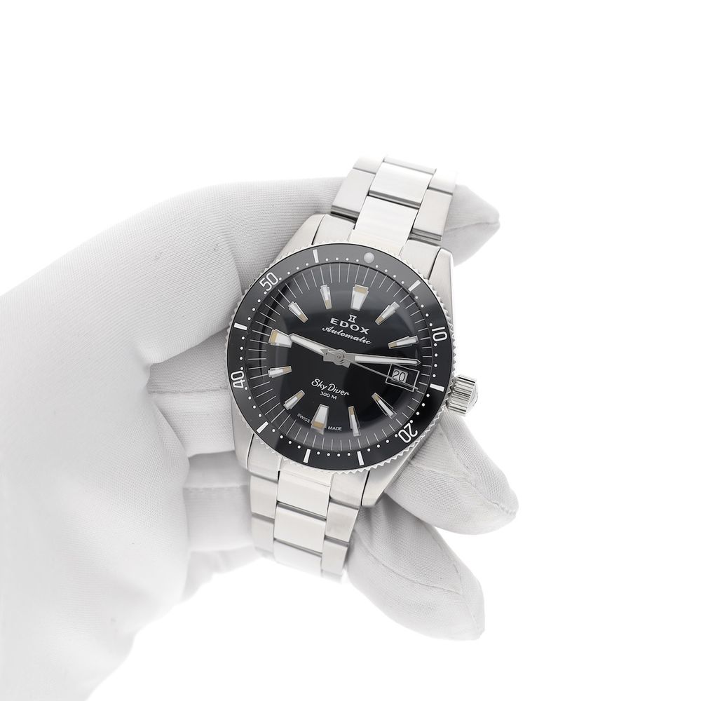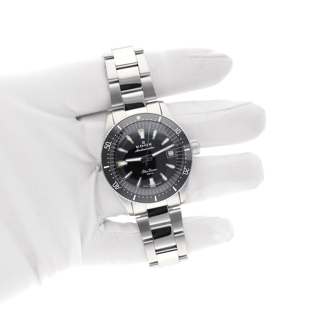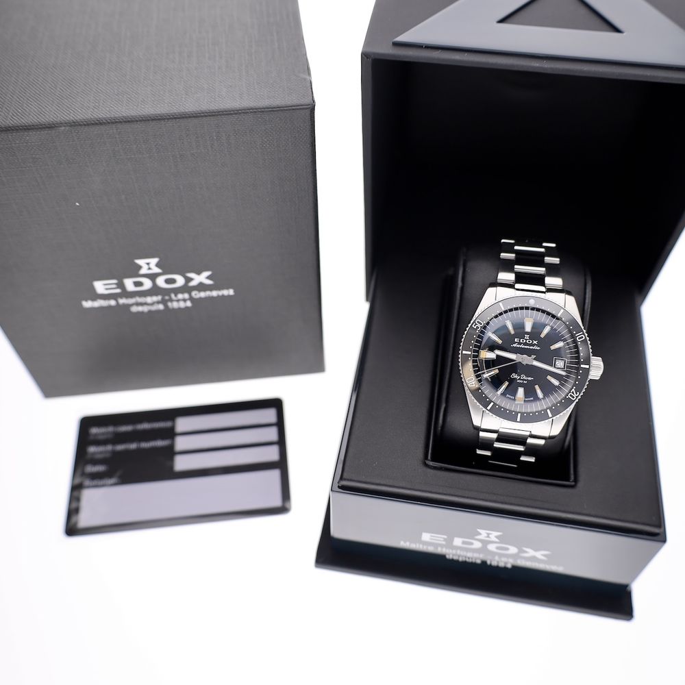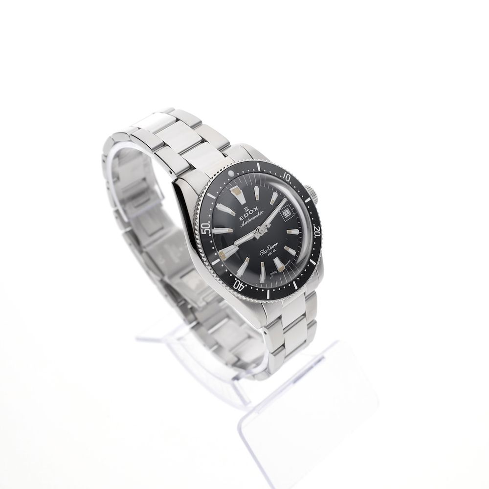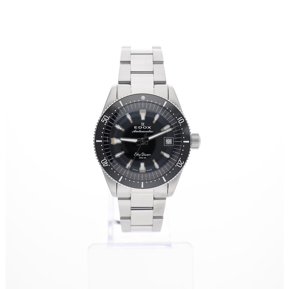 Attractive Heritage Edox Sky Diver Automatic men's watch with reference number 80131 3NM NIB. The Edox Sky Diver is a robust and stylish diving watch inspired by military watches from the 1970s. With its rugged look, reliable Swiss technology and movement, and comfortable wearability, this model is a perfect choice for the modern adventurer. This watch is new and unworn, comes as a full set, and is well below the last known retail price of €1790. The SkyDiver combines functionality with style. Whether you wear it during a sporting activity or in everyday life, this watch exudes strength and reliability. Thanks to its automatic movement and high-quality finish, this watch is made to last for generations. The Edox SkyDiver 80131 3NM NIB is not only a professional instrument but also a statement piece for the man who chooses quality, style, and adventure. The steel strap on this watch is beautifully made and finished and remarkably long. It fits wrists up to approximately 21 cm. We can, of course, customize the strap for you. This watch comes as a beautiful full set, including box, original warranty certificate (blank), and instructions. It also includes our in-house warranty report, and we offer a 1-year warranty.