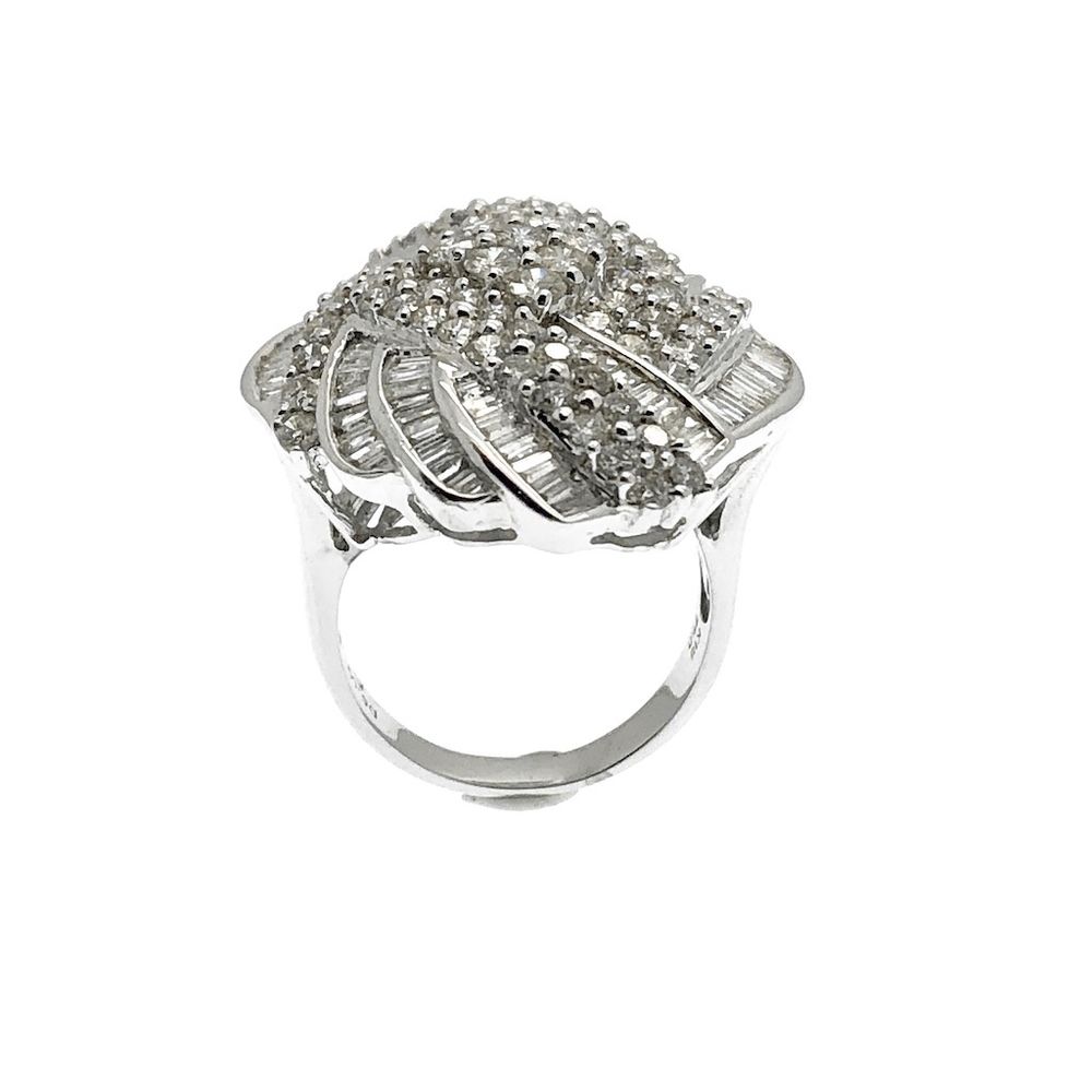 Exclusive cluster cocktail ring with diamond; baguette and brilliant cut 5.00 ct