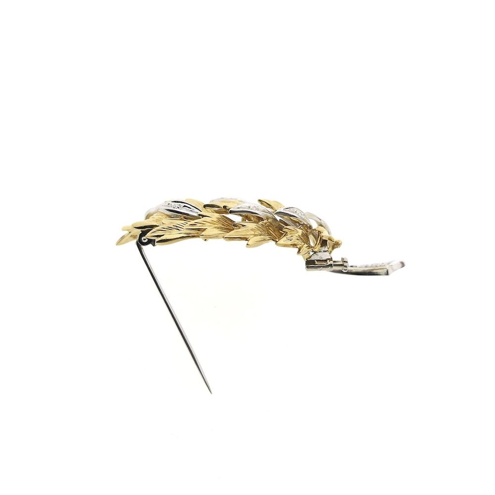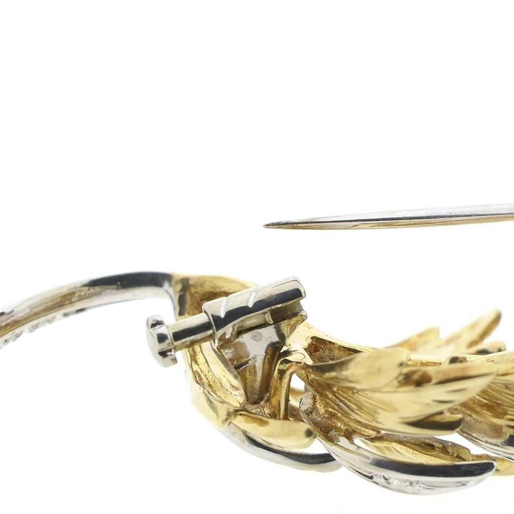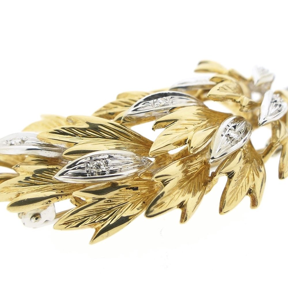 Exclusive two-tone gold leaf brooch with diamond 0.065