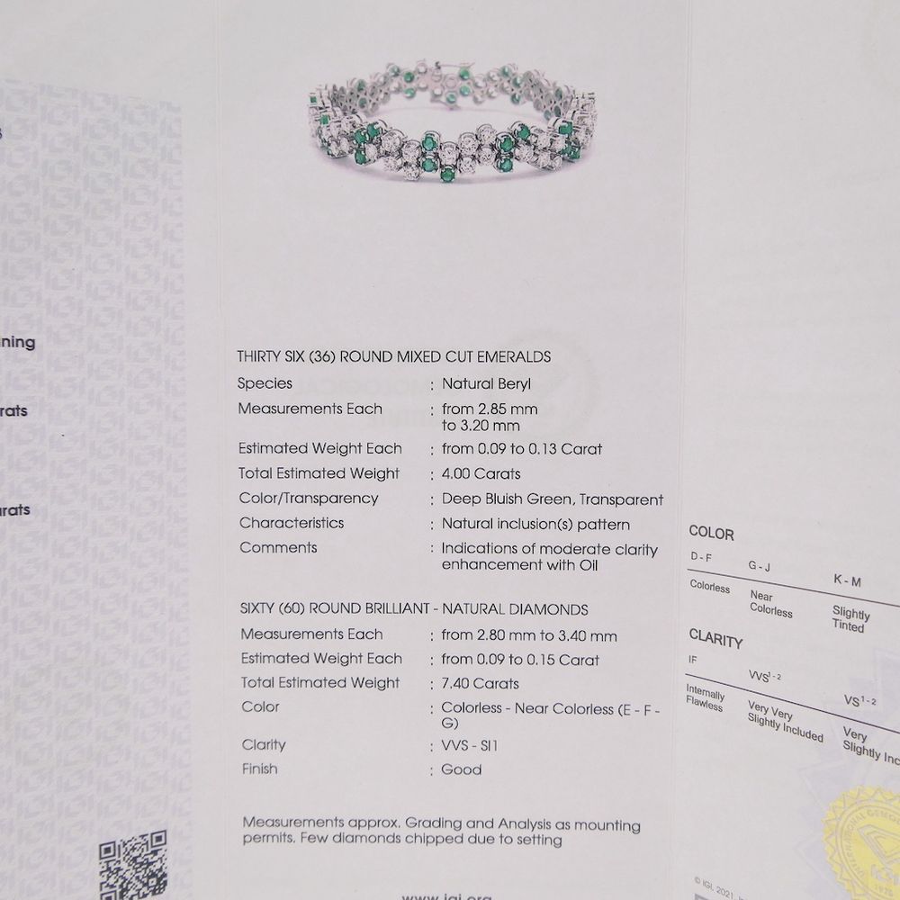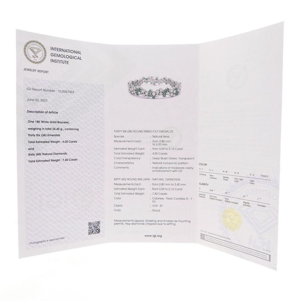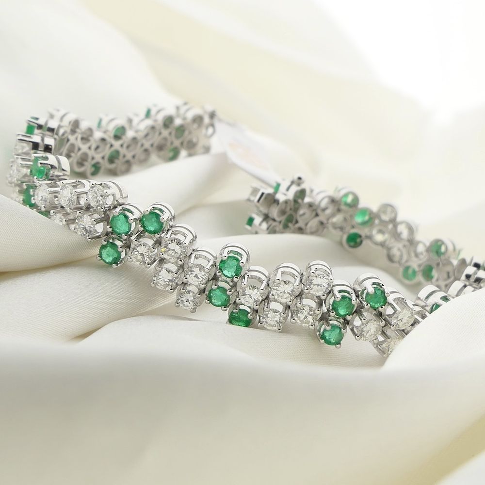 Exclusive white gold bracelet with emerald and diamond; 7.40 ct. + IGI Certificate