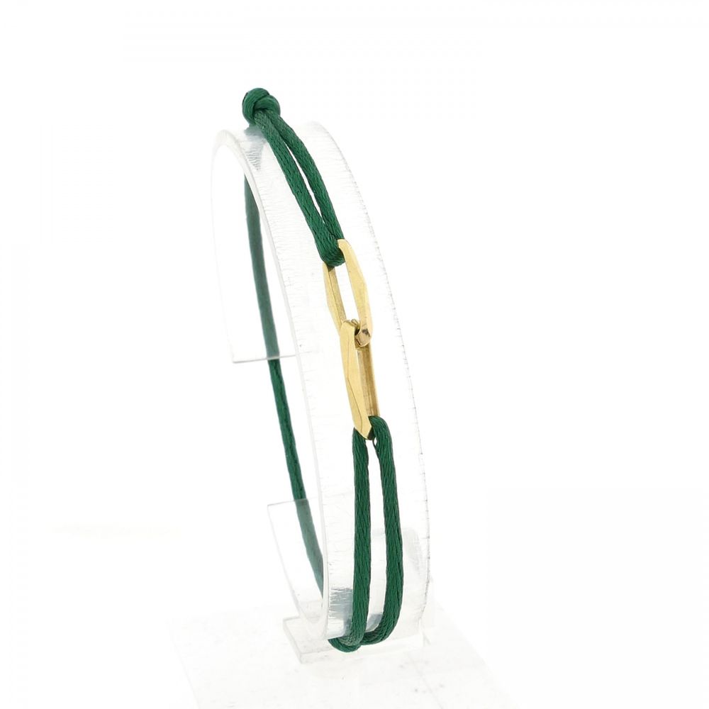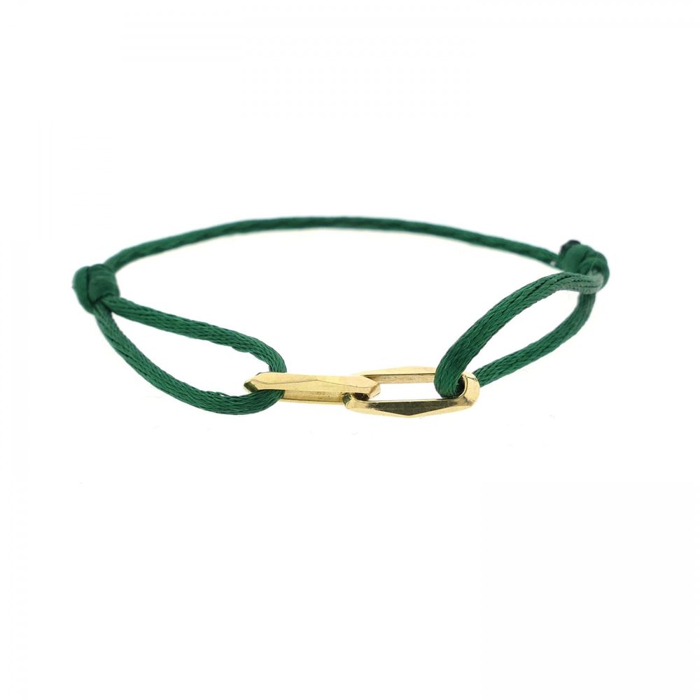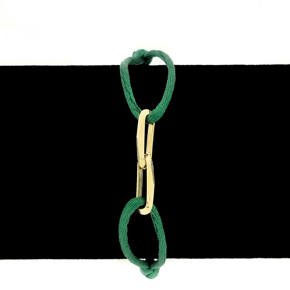 Forever Knots® Handmade Green Satin Bracelet with Gold Link