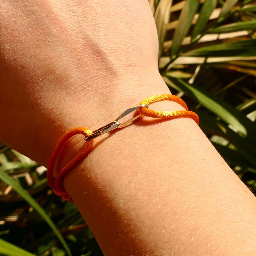 This colorful orange bracelet from Forever Knots® represents style, meaning, and sustainability. The bracelet is made of an orange satin cord (Ø 2.0 mm) and is also available in multiple colors, allowing you to always choose a variant that suits you. The closed forever link symbolizes connection and gives the bracelet a timeless and personal appearance.