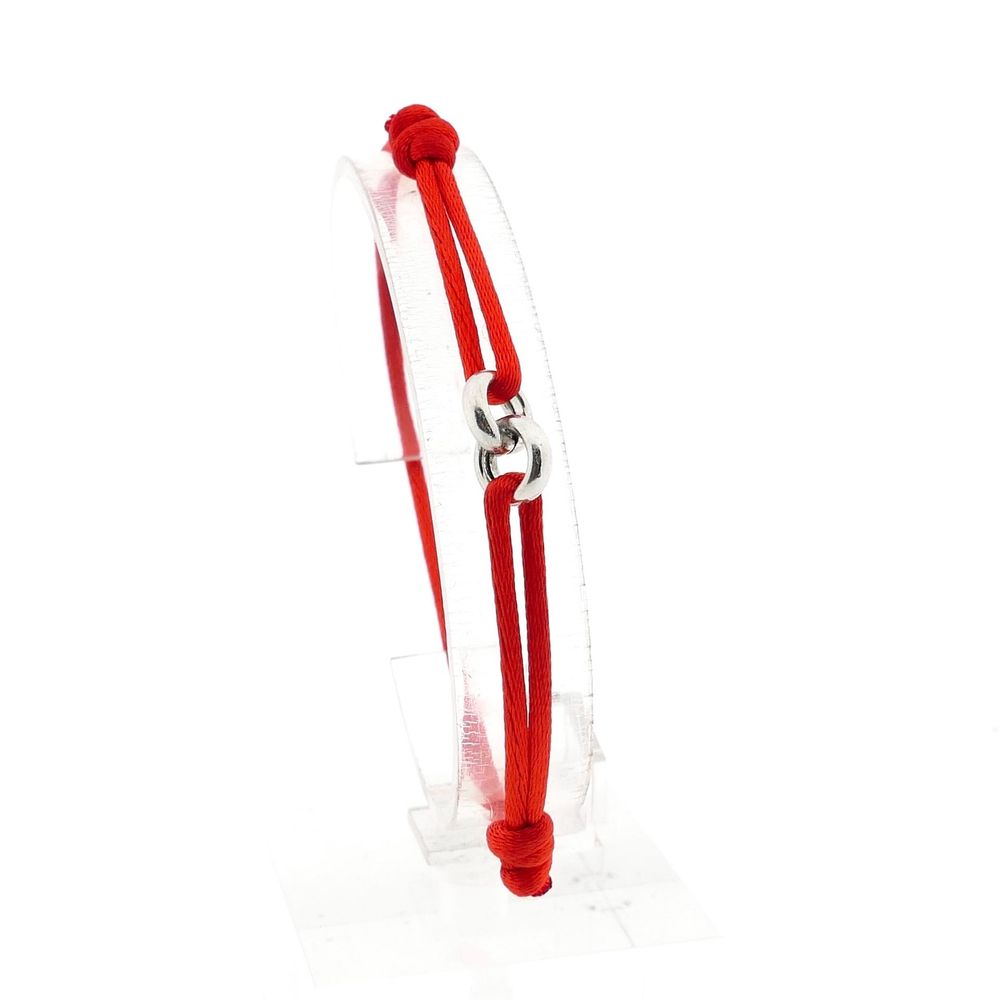 This colorful red bracelet from Forever Knots® represents style, meaning, and sustainability. The bracelet is made from a red satin cord (Ø 2.0 mm) and is also available in multiple colors, ensuring you can always choose a variant that suits you. The chain has a slightly playful and subtle character, consisting of two elegant rings connected together. A refined detail that provides a modern yet timeless appearance.