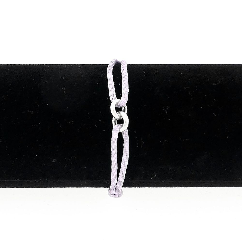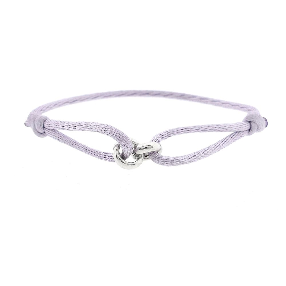 This colorful lilac bracelet from Forever Knots® stands for style, meaning, and sustainability. The bracelet is made from a lilac satin cord (Ø 2.0 mm) and is also available in multiple colors, so you can always choose a variant that suits you. The jasseron link has a slightly playful and subtle character and consists of two elegant rings connected together. A refined detail that ensures a modern yet timeless appearance.