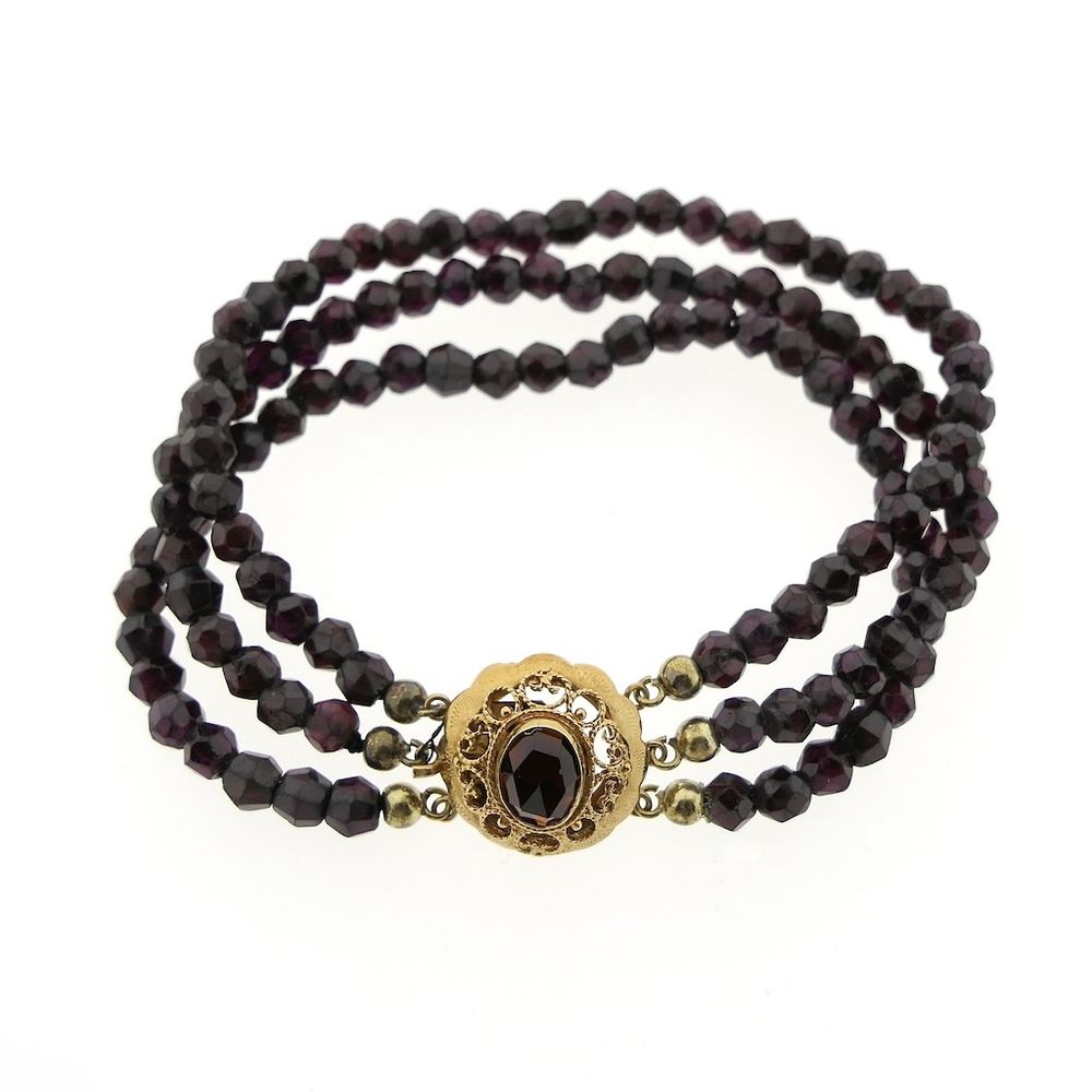 Garnet bracelet with gold clasp; Antique/vintage | 20 cm